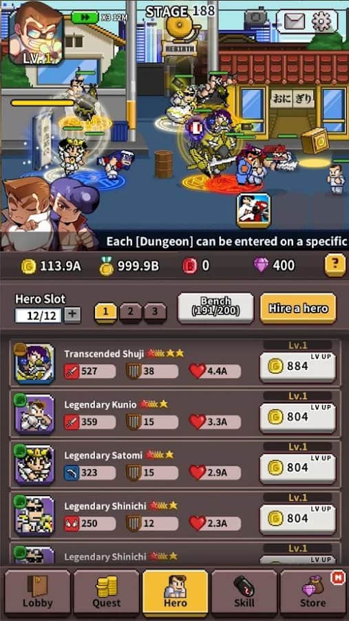 River City Ransom : Kunio Returns – manage a brave hero, Kunio who returned to school and found out there are bandits and villains. Help the main character to assemble a team of brave heroes and fight enemies. Touch the screen at the right moment and unleash devastating strikes with hands and feet of enemies. Guide your hero on a unique and unique locations and use the automatic function of warfare. In the game you will find more than 1000 stages of the game, unique character abilities and achievements and rankings.