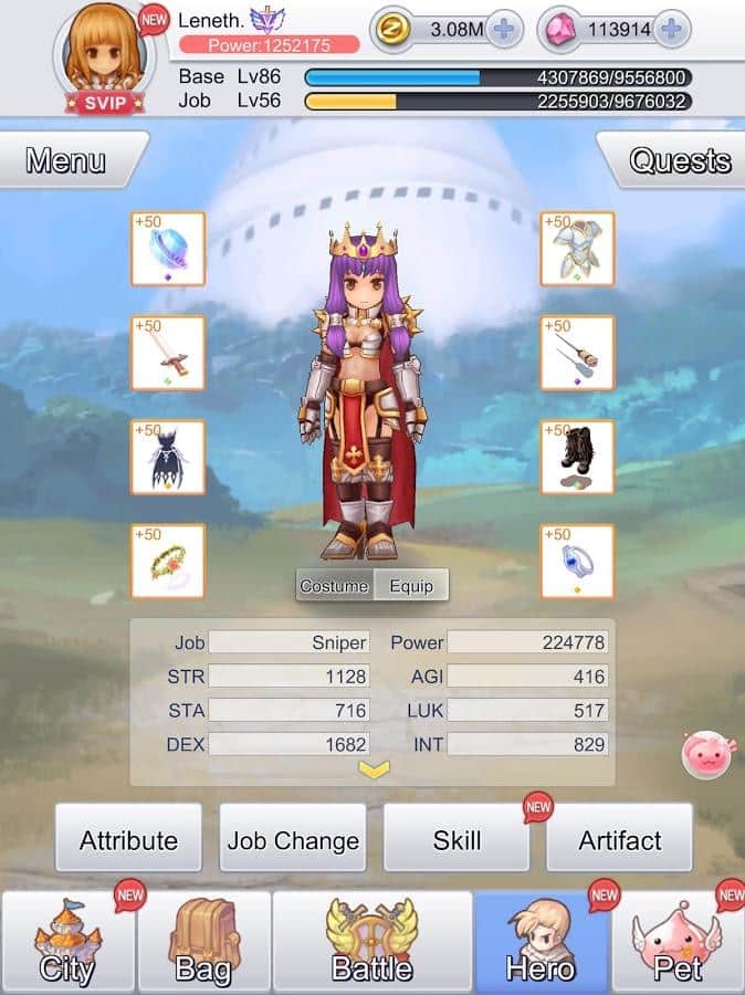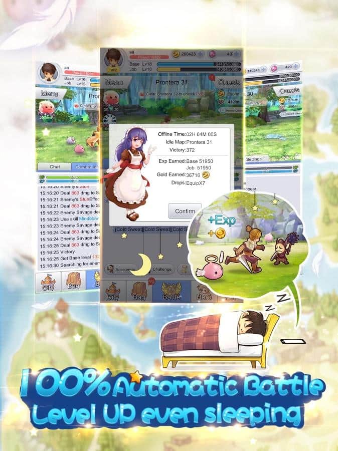 Ro: Idle Poring – game, where you will be transported to the magical land of Ragnarok. In this game your task is to travel to different worlds and fight with enemies. Game players will appreciate the automatic battles where you will increase your experience, passing a complex map when you are offline and at the same time, not missing any bonuses and gains. Pets in this game can also participate in battles, you can send up to 20 Pets in the research mission. In the course of travelling Pets will be able to produce their own weapons, food, and to raise their level. The nature of research missions associated with the ability of Pets to the maximum to increase strength pet carefully choose which one to send. Travel the huge world and discover new abilities.