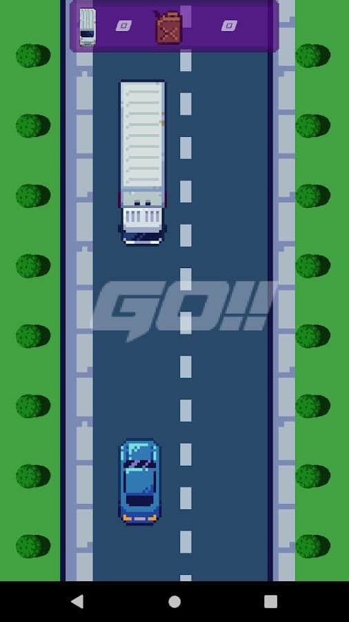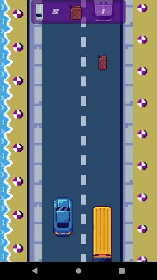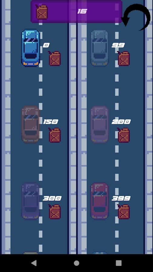 Road racing – racing arcade game for Android where you will drive on a busy highway. In this game with top view you control a car and drive at high speed on the roads while overtaking oncoming cars. Move your car from side to side and avoid collisions while trying to collect tanks with gasoline. Survive in this game as long as possible and set your record. Earn points, make safe the path and train your excellent response. Play the game and compete with friends for best results.