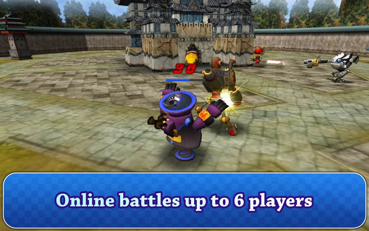 Robot Battle 2 - Отличная аркадная андроид игра, где вы погрузитесь в мир роботов. Вы примите участие в боях этих железных монстров. Среди этих роботов вам встретятся самые разнообразные, и даже забавные. При этом каждый робот настраивается по вашему усмотрению. В игре семь различных карт для проведения боев, где вы можете поиграть с друзьями в режиме онлайн. На одной карте могут расположится до шести игроков.