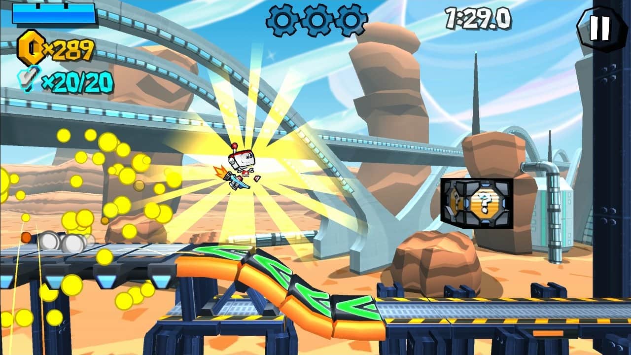 Roboto - an amazing and enjoyable game the game with good graphics and effects. You - the little robot Roboto, who just recently learned to ride your cool rectborder. But here's the frustration - what is your favourite robot-girl flew to another planet. So now you have to get to the space ship that will fly her into the next galaxy. And your way will not be easy, the obstacle will be other robots, both large and small. Rely on luck and you will find some bonus in the form of coins or upgrade.