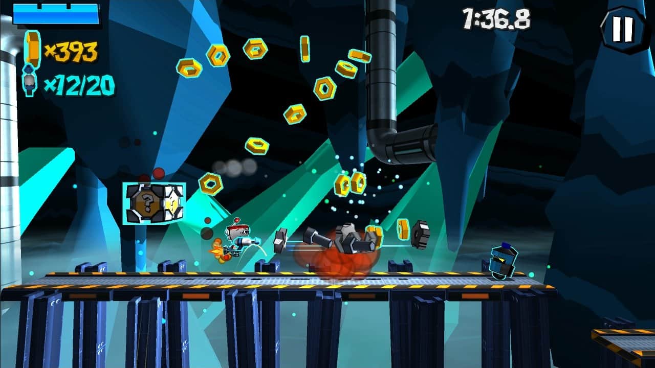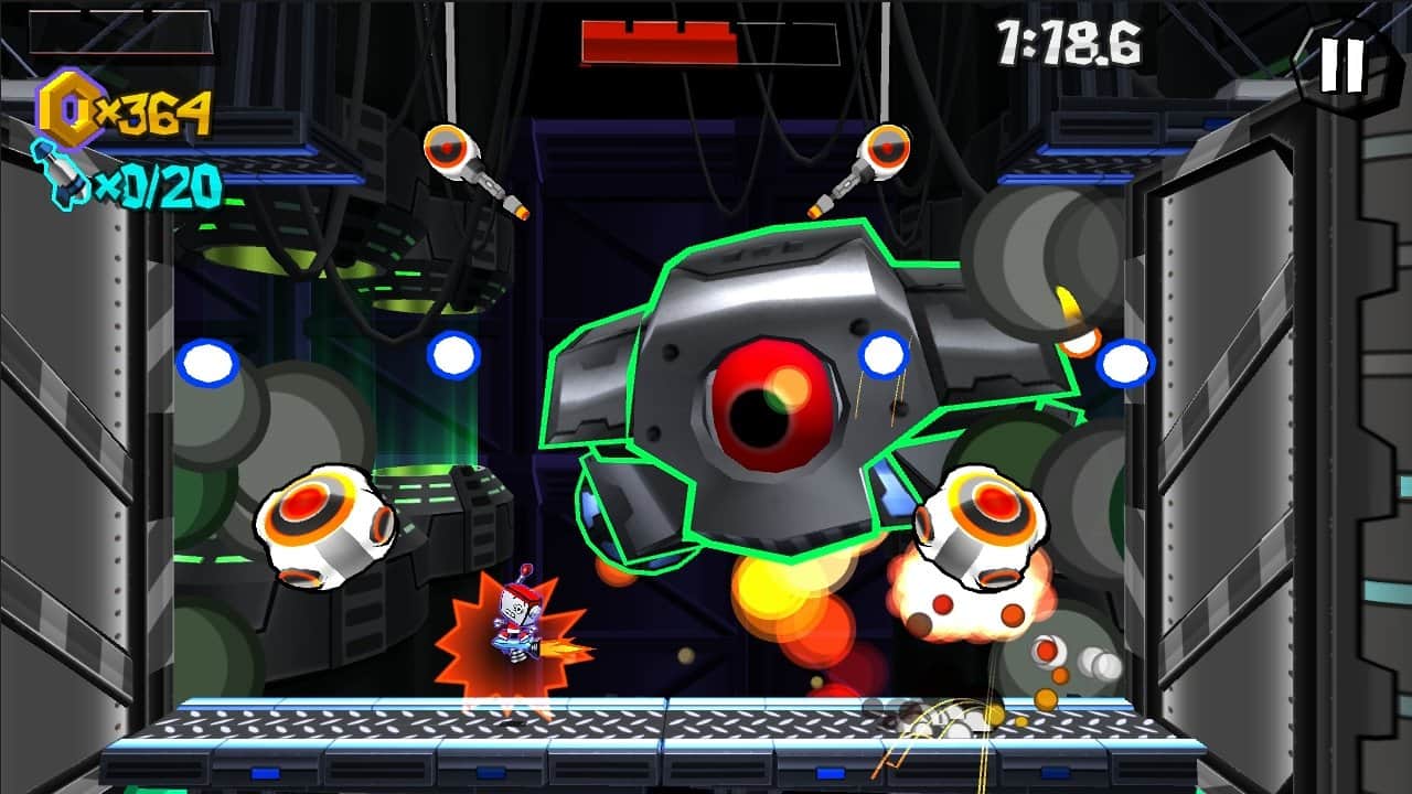 Control using the keys: joystick for turning left and right, and two buttons: fire and jump. Playing for this handsome robot, you will almost never fall down. His mini-Turbolet always you will pick up and lift! When, however, pass all 30 levels, you will fight the mega-boss! And then you will discover exciting mini-games.