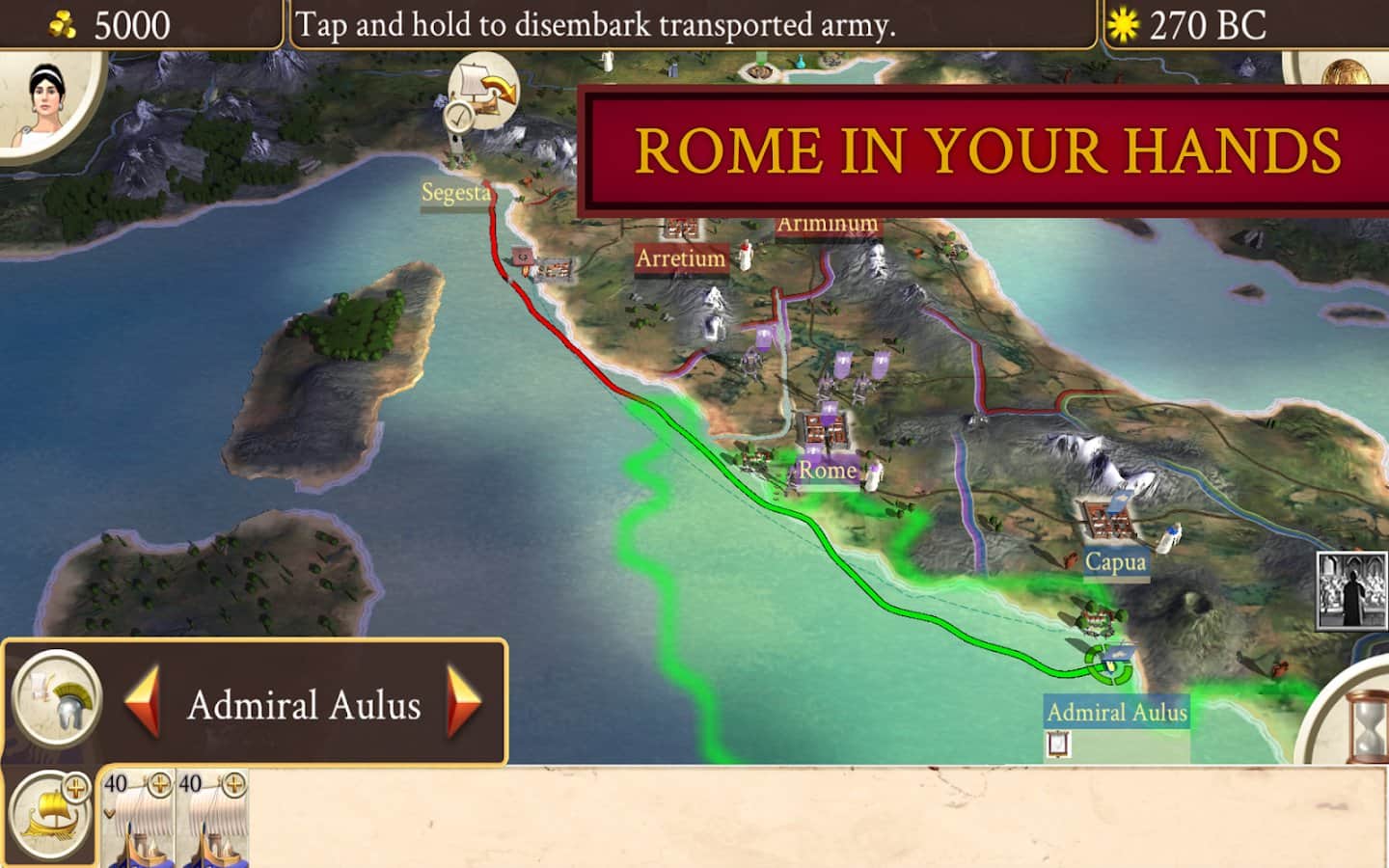 ROME: Total War – the strategic computer game in which you will be able to play on Android devices. This game combines turn-based strategy and tactics in real-time. In this game you will rule the Ancient world, and to conquer new territories, participating in thrilling battles, and the incredible military companies. Manage huge armies and give them orders to attack and attack. Find yourself on the battlefield and control thousands of troops, ranging from the legions, spearmen and archers and ending with the cavalry, chariots and war elephants.