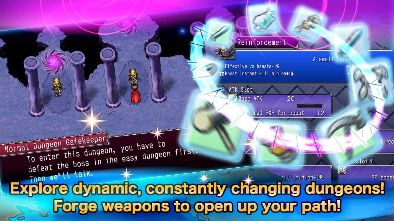 Studio Kemco, a Japanese company founded in 1984 and specializing in the development of games for gaming machines and consoles. The greatest popularity was gained thanks to the creation of a classic full-scale role-playing games, including those for desktop platforms and mobile devices. RPG Revenant Dogma - a classic representative of Kemco products made in accordance with the requirements of the genre. The main aspects which attracts the gamers are complicated, intricate plot, developed characters, classic gameplay, the original pixel graphics. Everything else the game has received a more detailed system development, improved combat model, unique items and skills.