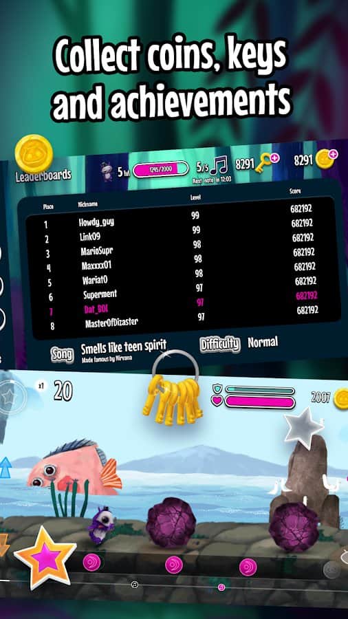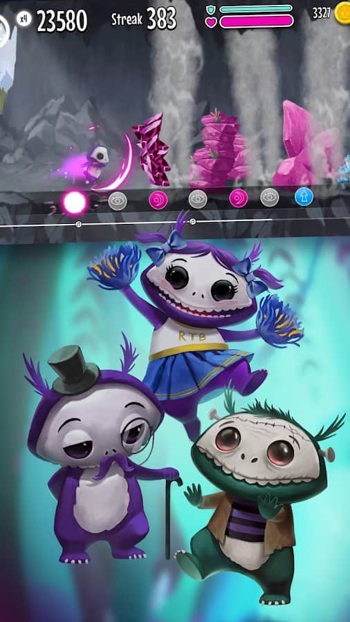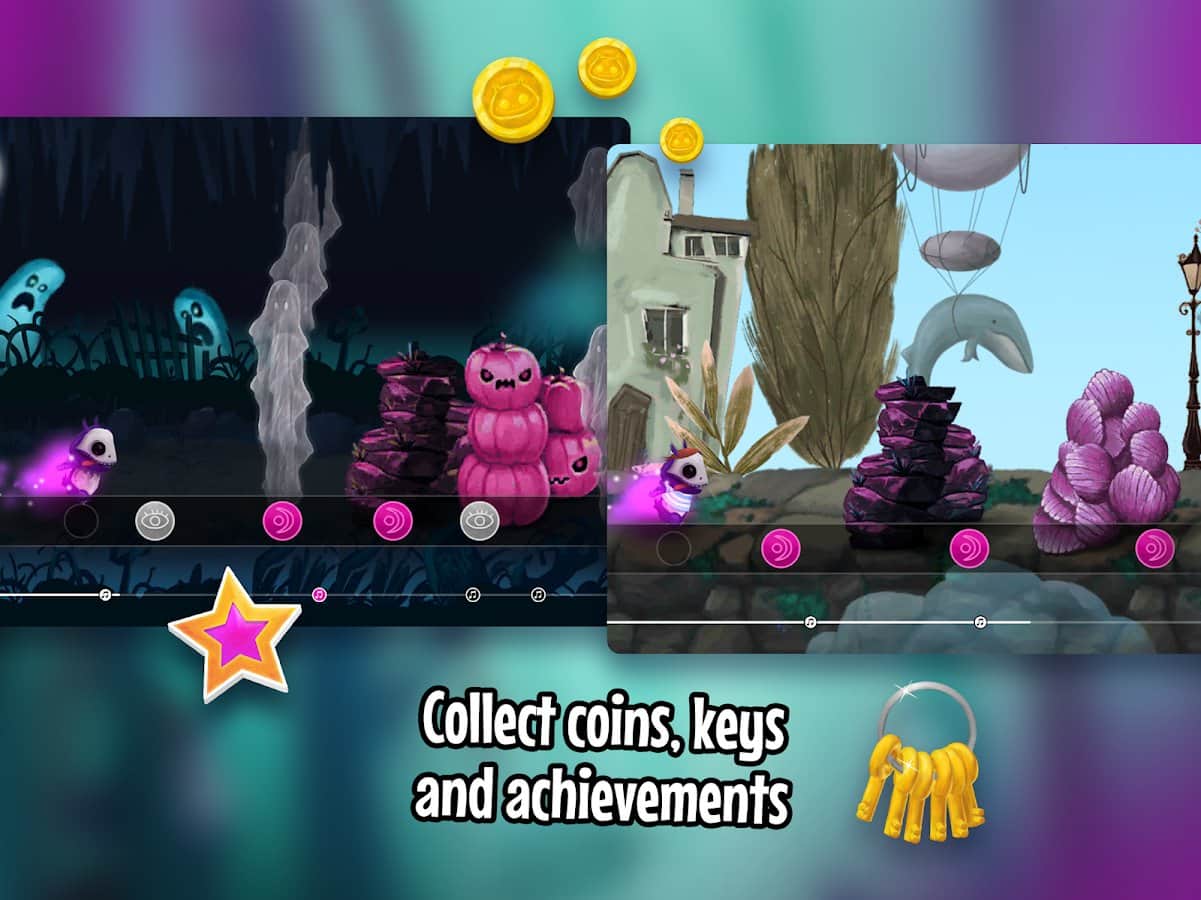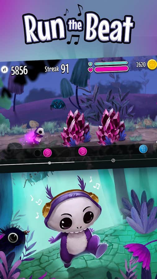 Learn to play the rhythm of the background music (which was specially written by developers) and run, overcoming light obstacles on the way to victory in the game Run the Beat! Try 2 different modes (arcade or cooling) and select the most suitable for successful runs. Collect gold coins and try not to bump or fall to make it to the end, because you have only 3 lives and several checkpoints for revival. Instead of just jumping you can use superpowers, which throws some obstacles.