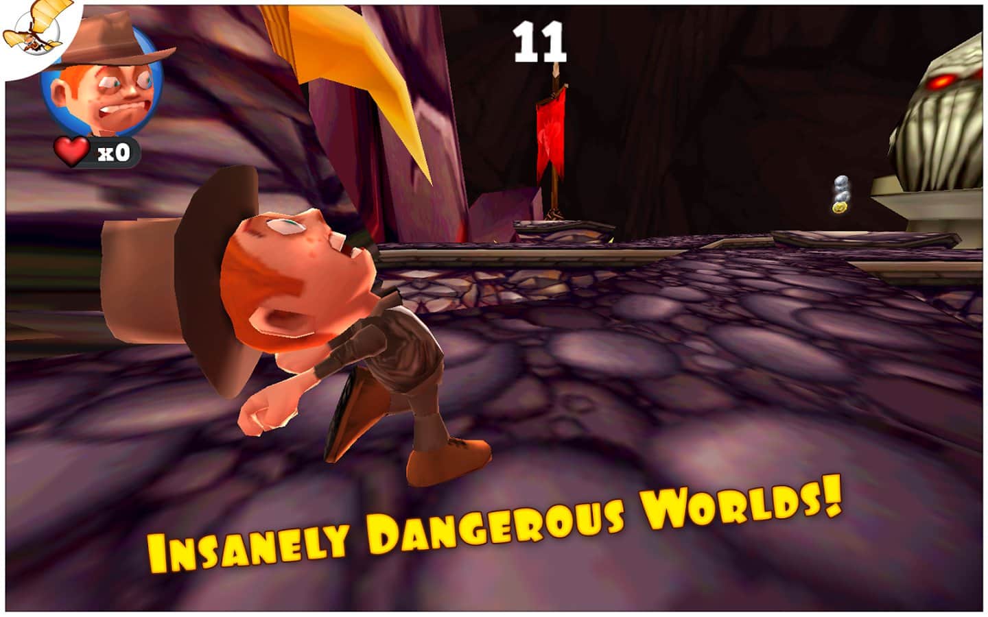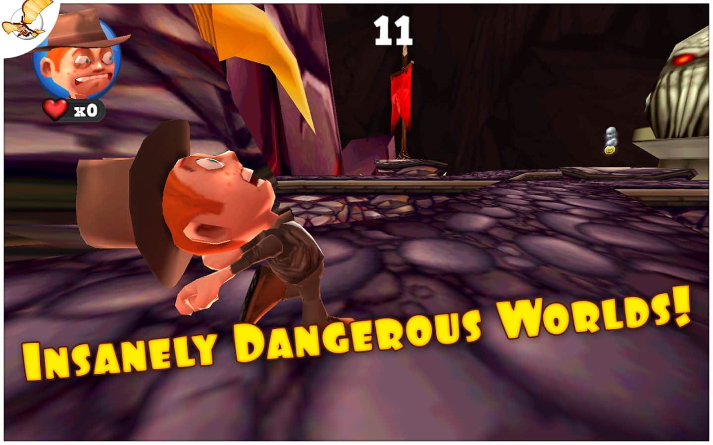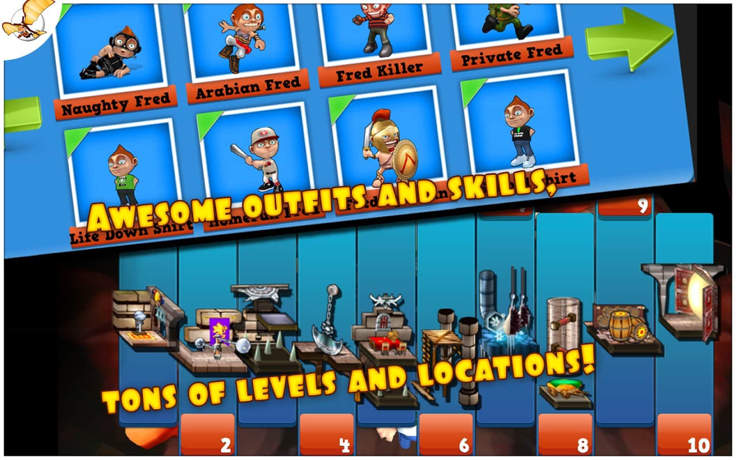Running Fred - and finally, the game Falling Fred. Now our restless adventurer runs... and how! Running Fred for android is a real race to the bottom with the Miss Death! And this is not a simple fall from a height, there is much more serious! So, you have to run without stopping (luckily thanks to the accelerometer, Fred runs itself, your task is only to control other actions - jumps, uvorachivaniem, twists, etc.) and collect the silver coins scattered around the level. And as much as possible, because at the end of the level, they are exchanged for gold at a ratio of 5 to 1. ie 5 silver 1 gold given. And as for the gold coins you can buy different abilities (for example, first and foremost is to purchase a double jump), as well as to dress up... But you need to try! Well - there is a lot of acrobatic aerobatics in your performance, hundreds of dangerous traps, a huge number of different skills and bonuses. There are several game modes: Adventure, Challenge and our favorite Endless Survival!