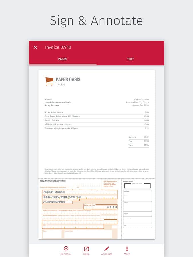 Scanbot is a convenient, fast, mobile, and most importantly free PDF scanner with capability of scanning directly from your phone!
