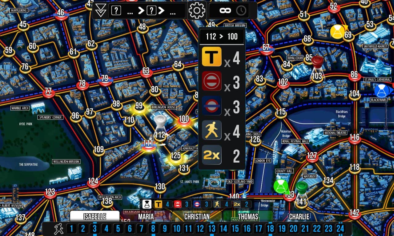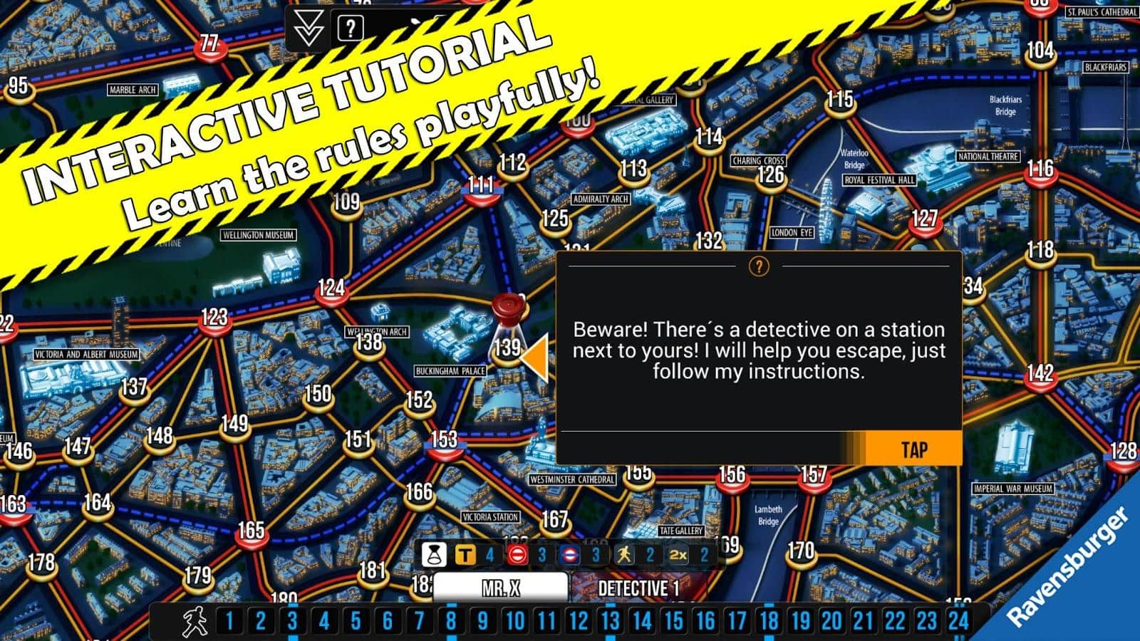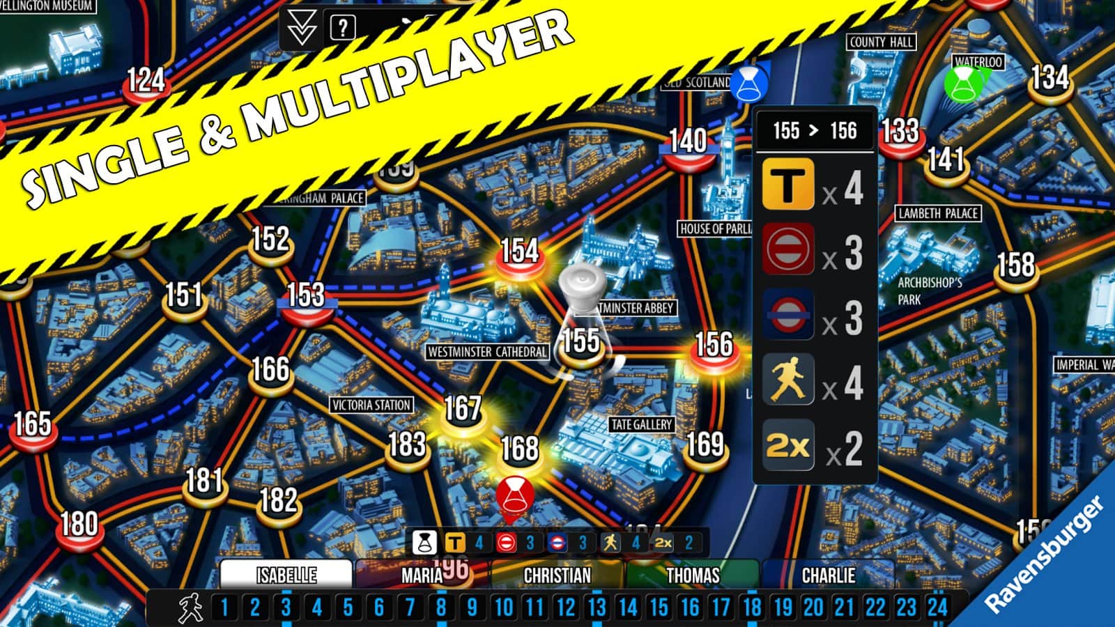 Scotland Yard для Андроид это цифровая версия одной из самых популярных настольных игр выпущенных знаменитой компанией Ravensburger, благодаря которой свет увидели десятки хитовых настолок, еще в 1983 году. За столь богатую, по игровым меркам, историю Scotland Yard разошелся более чем четырех миллионным тиражом. Конечно же столь популярная игра не могла остаться без внимания разработчиков мобильных игр, особенно сейчас, когда мода на ретро-настолки только набирает обороты и студия Ravensburger Digital GmbH порадовала поклонников жанра цифровой версией Scotland Yar. Андроид версия полностью соответствует оригиналу, ваша задача играя за одного из пяти легендарного сыщика Скотланд-Ярда поймать не менее легендарного преступника Mister X. В игре присутствует полноценный многопользовательский режим при помощи которого вы сможете весело провести время с друзьями или же другими игроками со всего мира.