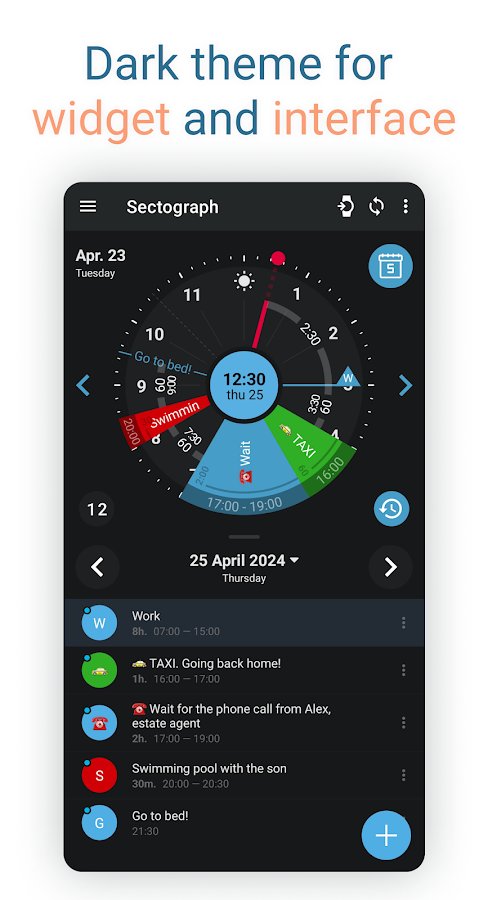Sectograph is a unique organizer app that helps you manage your time effectively by displaying tasks and events on a 12-sector dial. The service automatically syncs with Google Calendar and transforms your tasks into a visual timeline, allowing you to track your schedule and manage your activities in real time. With a widget or dial on your smartwatch, you'll always know what's happening and how much time is left until the next event.