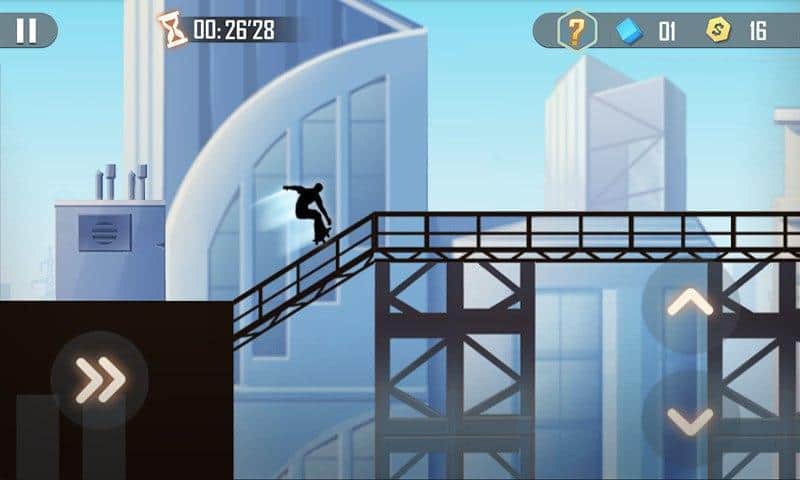For quite some time began to appear arcade game in which the characters were presented in the form of dark silhouettes, so players familiar fitingi in a similar style, and of course the game is parkour. Studio Candy Mobile decided to borrow the visual style and to make us horizontal runner sports theme. Shadow Skate - a game in which your character, the management Board, made in the shade all the other scenery is drawn in a colorful style. Your task is to control a skateboarder to overcome the greatest possible distance, thus carrying out dizzy tricks and jumps. The same developers have worked on a variety of locations, so you can try your hand in different environments.