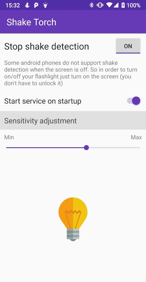 & lt;p & gt; Just shake the device to turn the flashlight on or off. It works even if your device is locked, also prevents accidental triggering when your phone is in your pocket. You can also adjust the sensitivity to shaking. Before shaking the device to turn on / off the flashlight, you need to open the app for the first time.