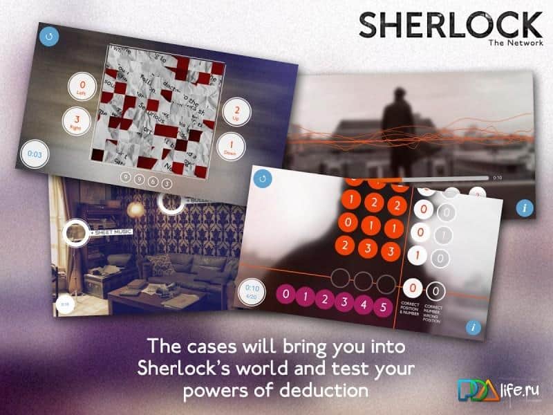 Sherlock: The Network – игра представляет собой набор различных головоломок на все случаи жизни. Погрузитесь в мир Шерлока и разгадывайте с ним различные головоломки. Игра содержит фотографии с фильма, а также эксклюзивное видео. Шерлок Холмс оставляет срочное сообщение для вас. Он хочет, чтобы вы ему помогли разгадать последнее преступление. С помощью мобильного телефона вы должны выйти на улицы Лондона и разгадать все загадки.
