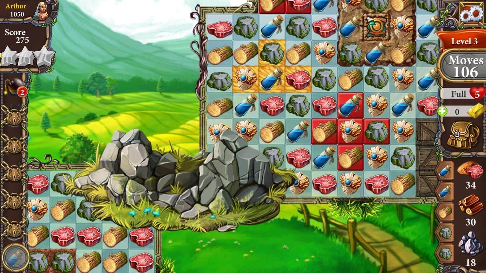Silver Tale – an exciting game of the genre three in a row on Android, where you will save the king's life. Embark on a fantastic journey where you have to match three or more objects in a row to pass exciting quests and create the items you need. Solve challenging puzzles and collect rare artifacts, explore numerous levels and collect items necessary to overcome obstacles on the way. Find all keys and open all the treasure chests and save the king's life. Create the items you need in a blacksmith shop and earn rewards.