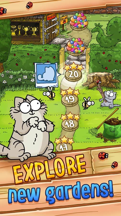 Simon's Cat - Pop Time – fun game for Android where you will help the cat to Simon to save his friends. In this game Mr. Gorshkoff finally decided to implement their threats and went on the hunt for Simon's cat and his garden invaders. Lovely creatures caught in the trap of bubbly and to get out of it they will need your help. Aim and shoot colored bubbles at a cluster of them up there. Release from captivity your friends and get points. Play through exciting game levels and participate in daily events to earn more coins and power-UPS.