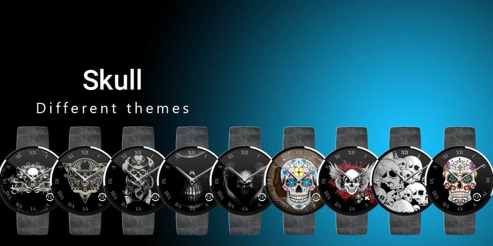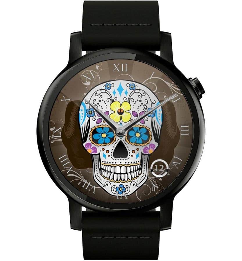 Presents dial perfect for those who want to decorate their timepieces with something novel, stylish and dark. We are dealing here with a whole collection of skulls, executed mainly in black and white with occasional splashes of other colors. For this reason, it is best they look on AMOLED, but nothing prevents you to use them on the clock with some other type of screen.