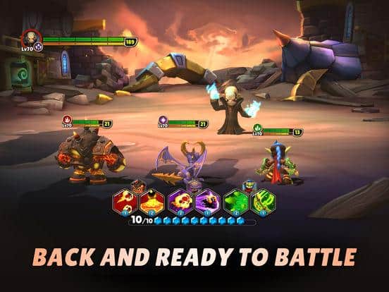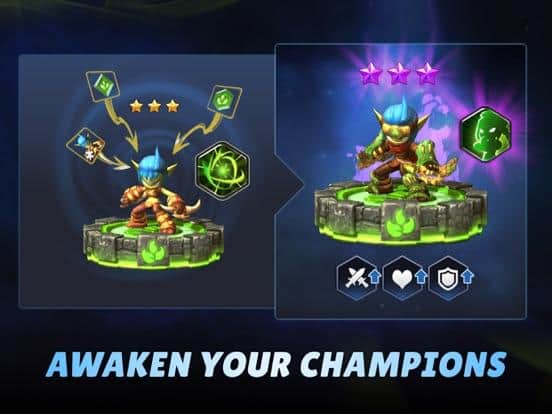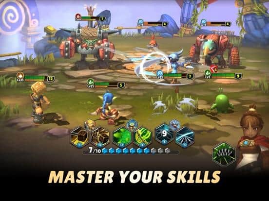 Grand Ring of Heroes is a great mobile RPG for IOS where you build a team of skylanders. In this game you will go to fascinating travel together with Spyro, Stealth Elf, Raptoran and many other skylanders. Create your unbeatable team, and challenge experienced players from around the world. Every skylander in the game has their own unique skills and appearance. Put on your heroes runes 10 different types and increase their power. Encourage the skylanders and villains to fight on your side. Pick the right moment and use the mana to successfully attack enemies.