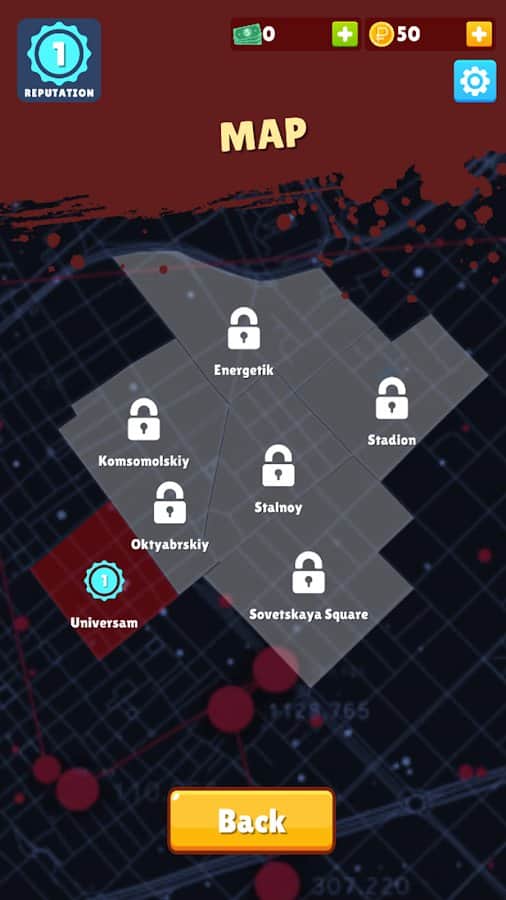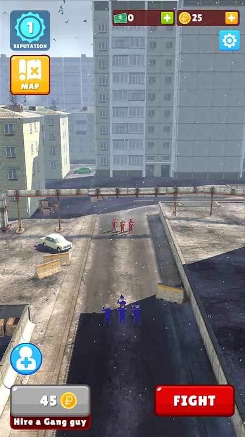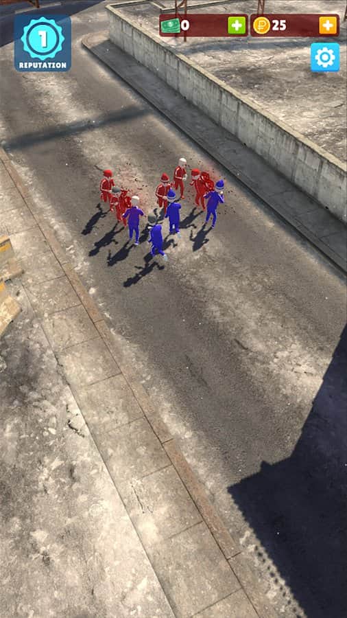 In "Word of the Guy: War of Districts", every collision on the roads leaves traces of blood on the road surface in this tactical game, where you have to lead a gang of street wars. Manage your macho squad and prove your undeniable superiority in ruthless battles between quarters.