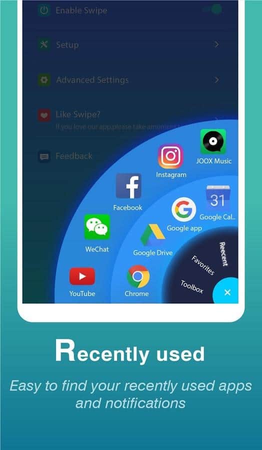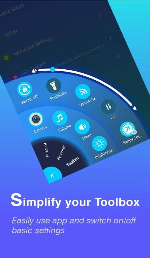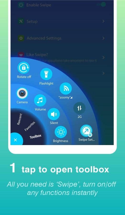 Smart Swipe - If you don't like to clutter your Desk, but you want to add as many shortcuts to anything this app is for you. With it, you will create a small icon in one corner of your screen and a simple tap will be able to get a whole menu with fully customizable features and shortcuts. In addition to its functionality this menu is quite simple and beautiful and has a whole bunch of possibilities.