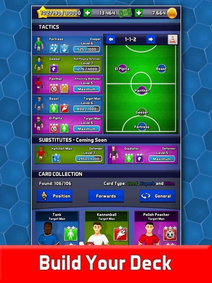 Soccer Manager Arena (Unreleased) – a sports game on Android where you will visit the role of a football Manager. Collect your unique football team, using more than 106 cards with famous players. Every player in the game has their own unique skills and abilities, use them in the game and win various Championships. Develop your tactics of the game and win good teams. Constantly improve the rating of your team and unlock new players and arena football. Challenge your friends and compete with them for the best results. Get record results and climb to the top of the leaderboard.