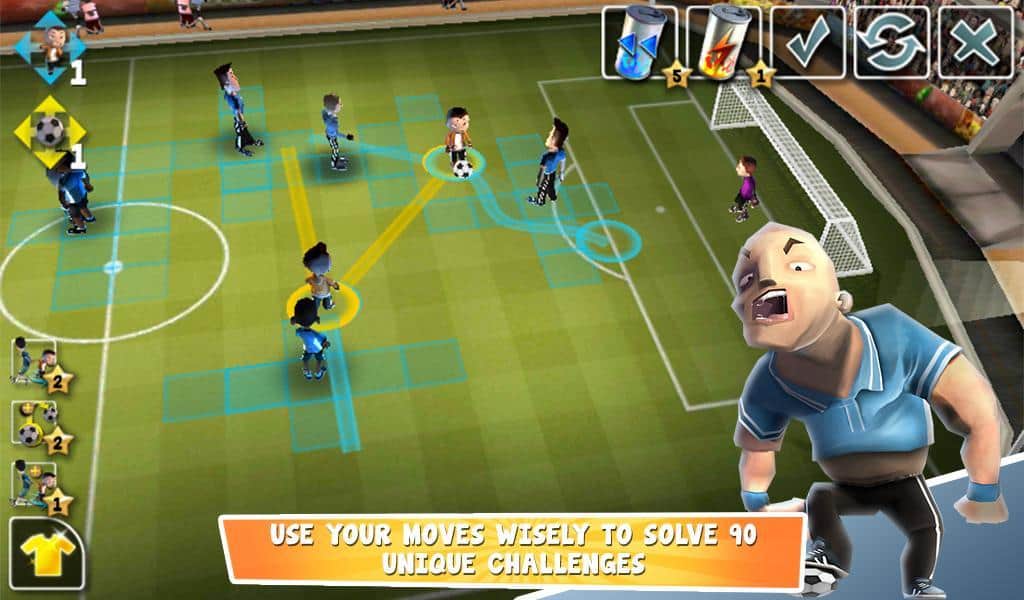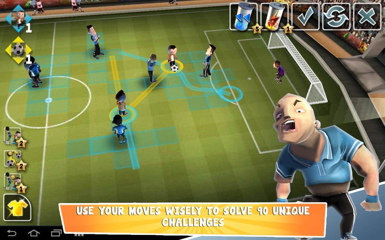 Soccer Moves - игра на андроид, на футбольную тематику, которая сочетает в себе несколько жанров. Эта тактическая игра про футбол с элементом головоломок, которая затянет вас на долгое время. В игре вам даётся некоторое количество шагов, за которые вам необходимо забить гол в ворота своего оппонента. Изначально ваша команда будет состоять всего из двух человек, но по мере игры она разрастётся до полноценной футбольной команды. За победу в матчах вам будут начисляться монетки, за которые вы сможете покупать различные предметы, улучшающие качества ваших игроков.