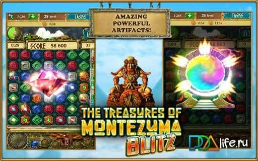 Treasures of Montezuma: Blitz is a game from a series three in a row. Collect three crystals in one in a row and become the ruler of absolute power! Safely overcome obstacles and build a tower of power in the jungle! Invite friends from social networks Facebook and play an exciting game "three in a row". Enjoy gorgeous graphics and sound effects! New level brings new bonuses which will allow you to earn points faster than your competitors. You all have 60 seconds. Will help you, the magic totems, unique artifacts and magic stones. The game also holds weekly tournaments.