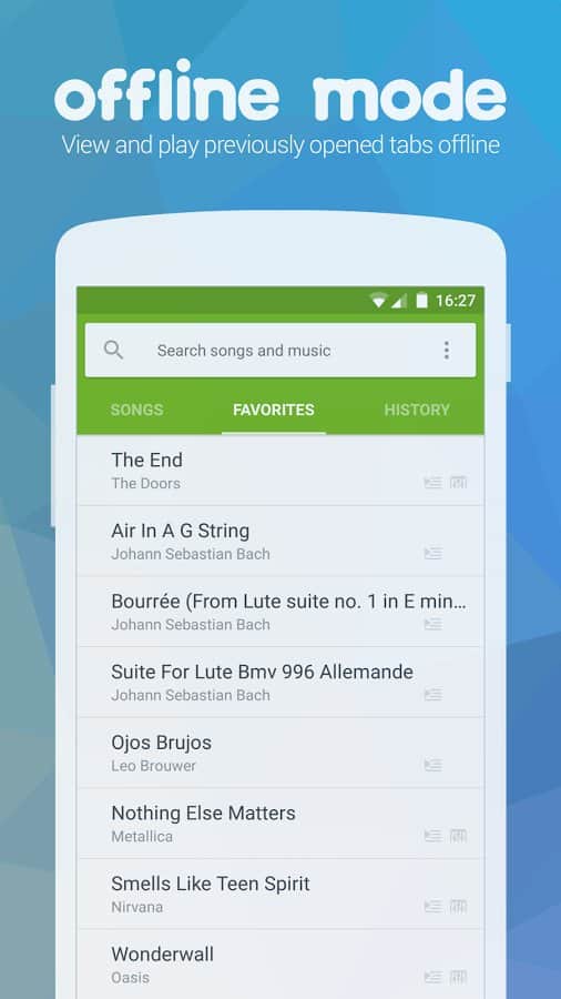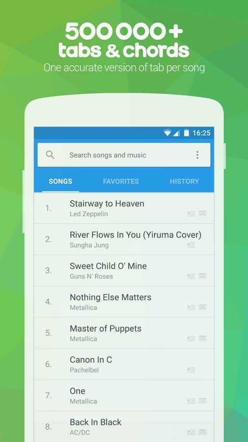 a Huge catalogue of tabs from the site Songsterr.com. Unlimited access to 80,000 songs (400,000 of tabs)