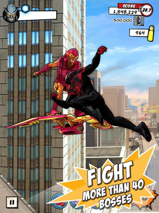 Perfect Spiderman - fun runner developed by "Gameloft" which you can play all of the famous comic book hero Marvel – Spider-Man. In the game you will meet even with a female spider. Running around a huge metropolis, collect the bonus and coins and fight with different enemies in five parts of Manhattan. With the web we can quickly move from one place to another. So as the game has a large number of bosses which you marked). Over 25 levels you will fight with evil. Unlock new characters and clear the city from all the bandits.