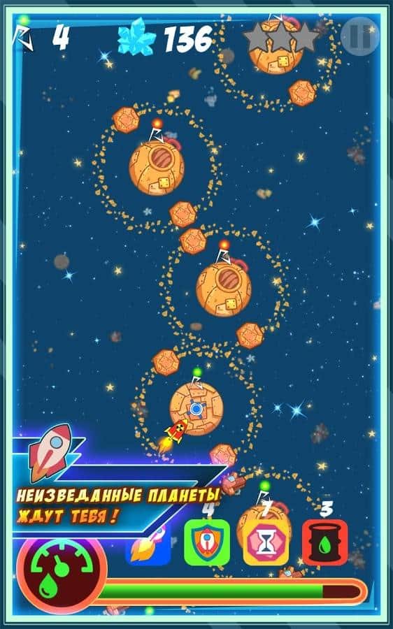 Anniversary - an Interesting arcade game for Android. Start your adventure through the galaxy with this application. You'll have to visit all known and unknown planets, to restore the relationship between the new civilizations. But you don't have to break your spacecraft about asteroids and satellites circling around the planet. And for what would have been a little easier, you start the game with a few improvements, of which also there is the slowing of time and an extra life.
