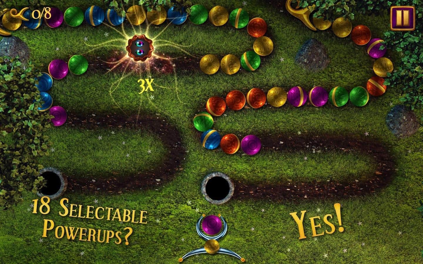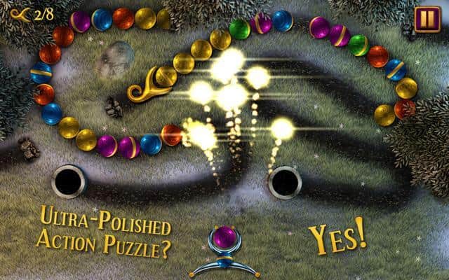 Sparkle Unleashed - Отличный зуманойд наконец-то добрался до андроид платформу. Как всегда в играх данного типа, вам нужно стрелять из «рогатки» в ползущую змейку из шаров, при этом группируя их вместе. Если соберите большую цепочку, то вылетит бонус, который поможет вам в прохождении уровня. Всего бонусов около восемнадцати штук. Игра имеет красивые эффекты, поэтому вы поиграете с удовольствием, а может даже застрянете не на один час.