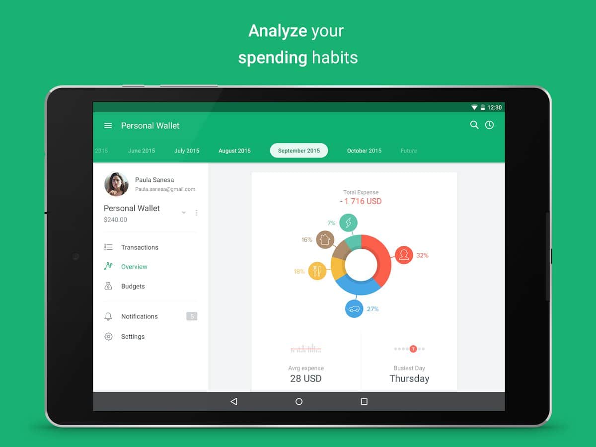 Spendee - Constantly throw money to the wind, and nothing can't stop it, then just control your spending with this simple and colourful app. You can record here your income, and then subtract them from all the expenses, besides displaying all this can change and do in the form of a graph, thus dividing the entire graph into sections with their icons for a better perception.