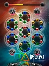 Spinballs for Bada will make you not just move the fingers very quickly, and include logical thinking to the fullest! Before you 7 circles, 6 colored balls on each. Your task is to spin round in any direction (clockwise or counterclockwise) so as to build as long a chain of balls of the same color. Do not forget about the ticking of her watch - time is running out! To facilitate his victory, there are 4 types of hints help: