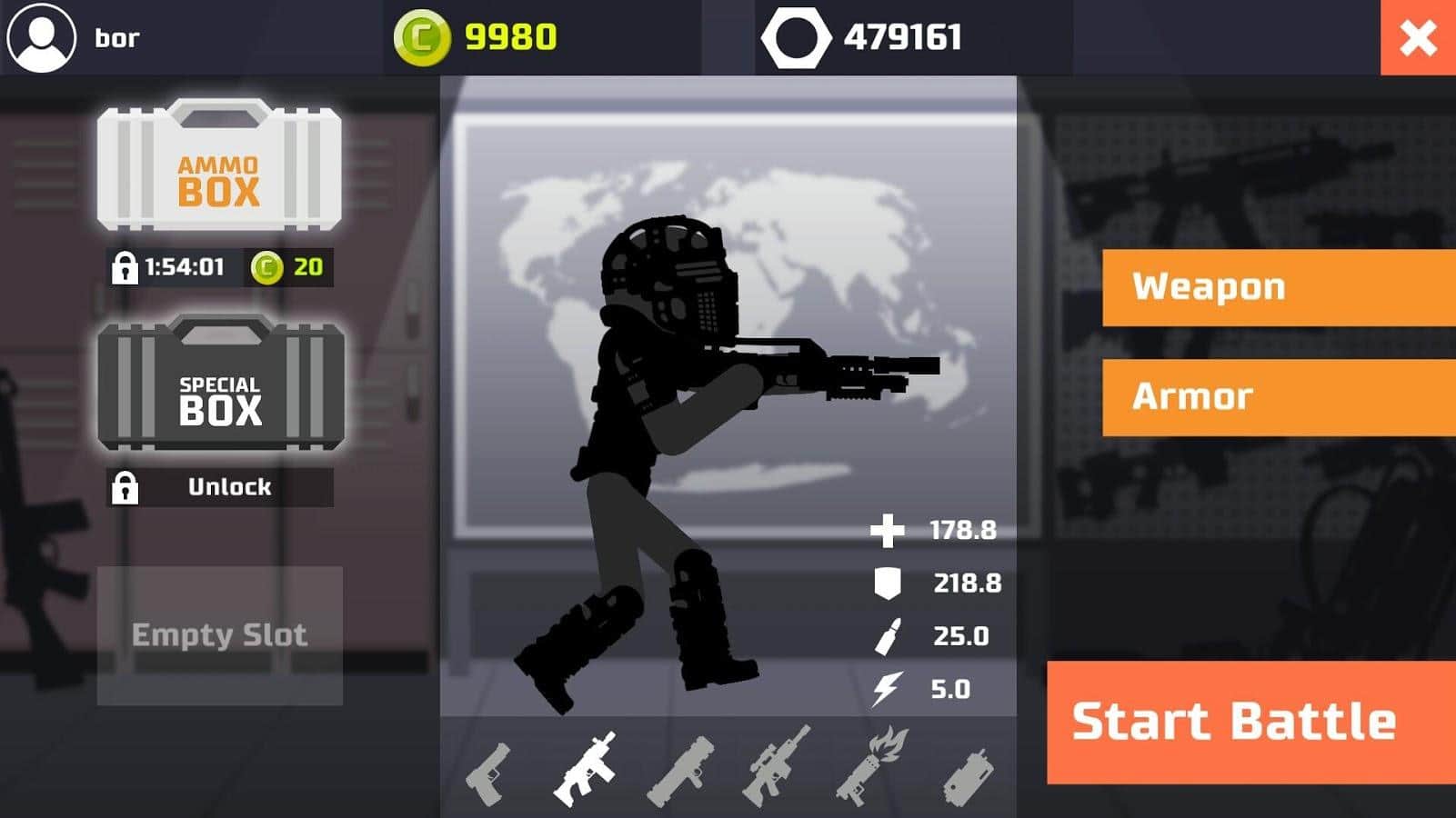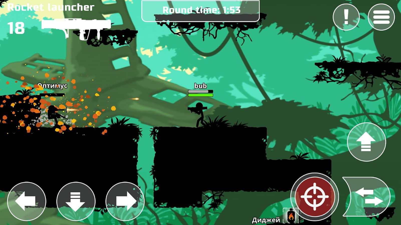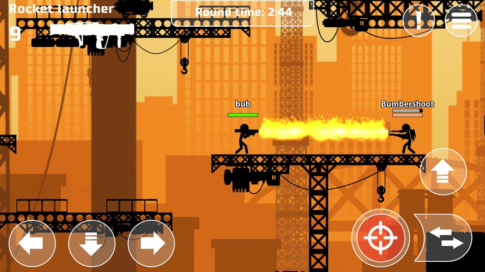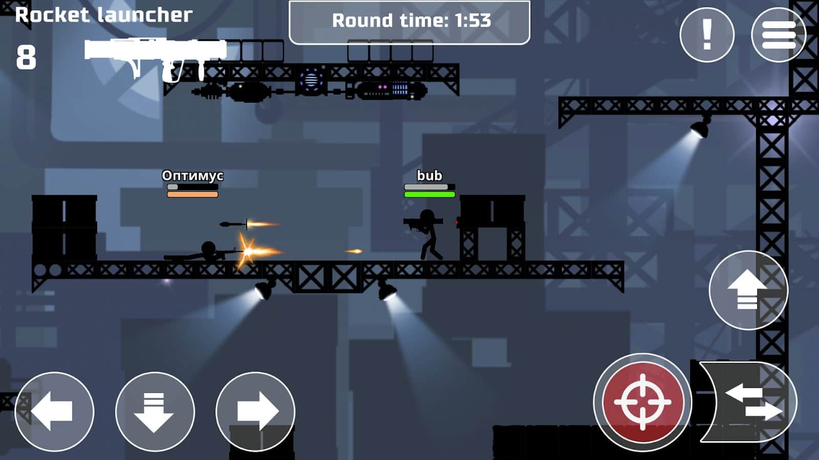 Stickman Wars PvP Online multiplayer shooter for Android where you fight with players from around the world. Help the stickman run, jump, and fire continuously at the enemies trying to survive as long as possible in this dangerous world. At your disposal is a huge Arsenal of weapons ranging from pistols and assault rifles and ending with bazookas, flame throwers and explosives. Navigate through the many dangerous levels of the game and overcome all the obstacles and traps in their path, and fire continuously at enemies. Play this game and enjoy great graphics, impressive special effects and a real heavy metal tracks.