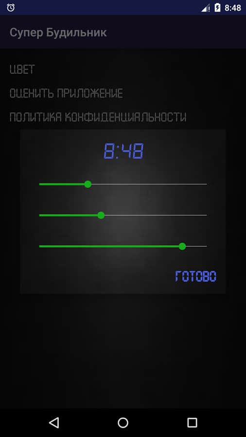 "Super alarm clock" is designed for those who have difficulty with morning awakening after sleep, and for those who are in a hurry, but to be safe still use the "sources". Features: