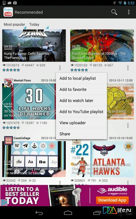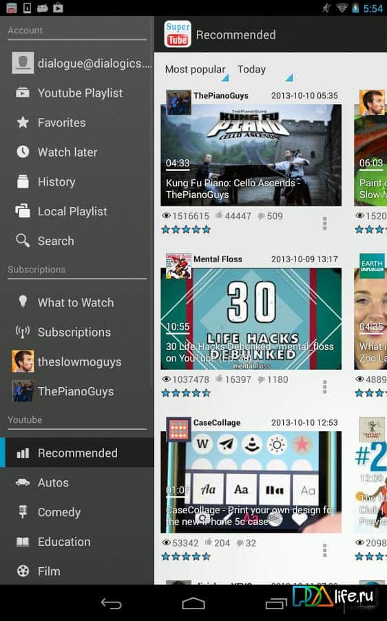 SuperTube -youtube a convenient player for Android to view your favorite videos. The program has a simple uncluttered interface that even a novice will understand. Functionality is also excellent in addition to standard functions such as rewind, pause, and other there are other useful pieces that will be a nice addition when using the application.