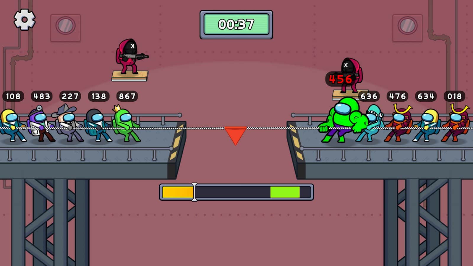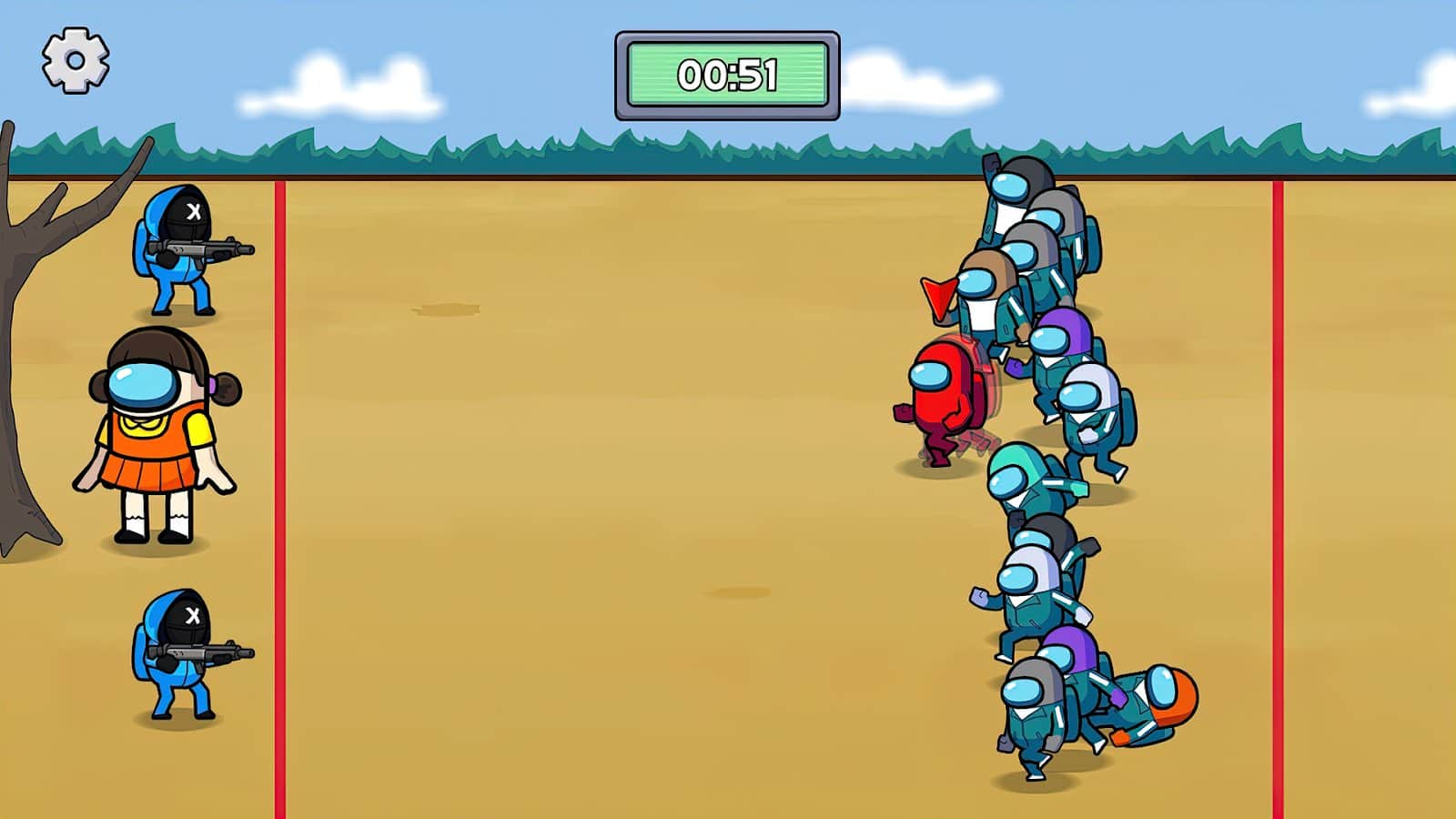Survival 456 But It's Impostor - The acclaimed series "The Squid Game" acquires new meanings and colors, because now all the characters will be heroes from the game Among us! Try to stand on all the obstacles, because at the end of the game you will receive an unexpected reward. Each mini-game has unique rules, locations, items, staff and other details that only enhance the atmosphere of adventure. Learn to quickly grasp the meaning of what is happening, so as not to stand still or immediately knock out the number of survivors, but always be ahead.
