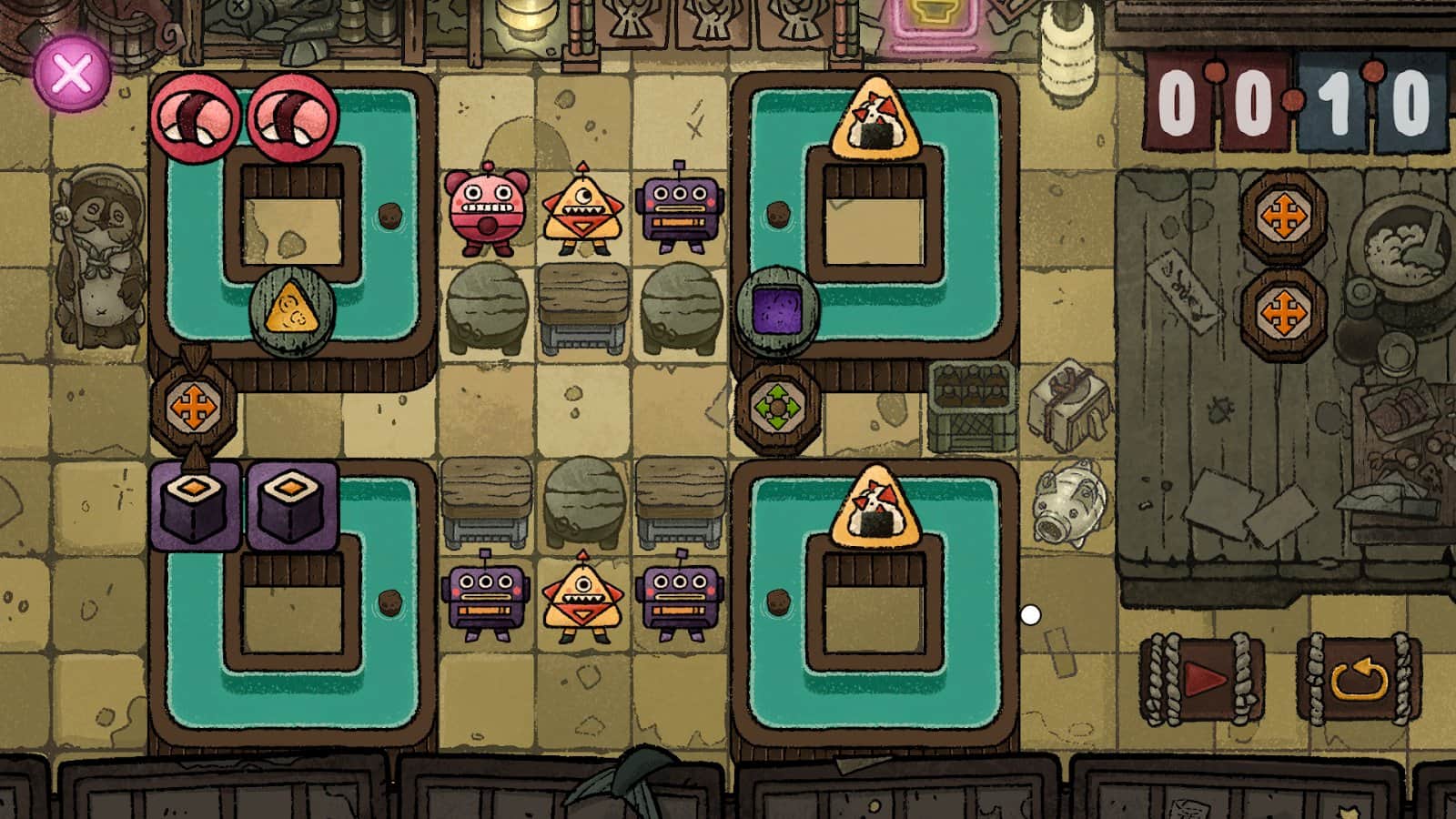 Welcome to the world of Sushi for Robots, where fantastic puzzles meet amazing stories of friendship and adventure. Your task as an experienced head chef of the robot sushi restaurant is to please even the most discerning customers, turning ordinary rolls into unique dishes. Press the play button to see how your quirky machine delivers orders on time. But don't forget to take breaks between puzzles to listen to the conversations of three friends who regularly visit your restaurant.