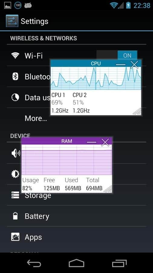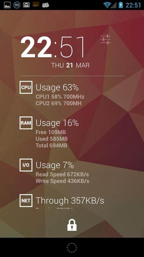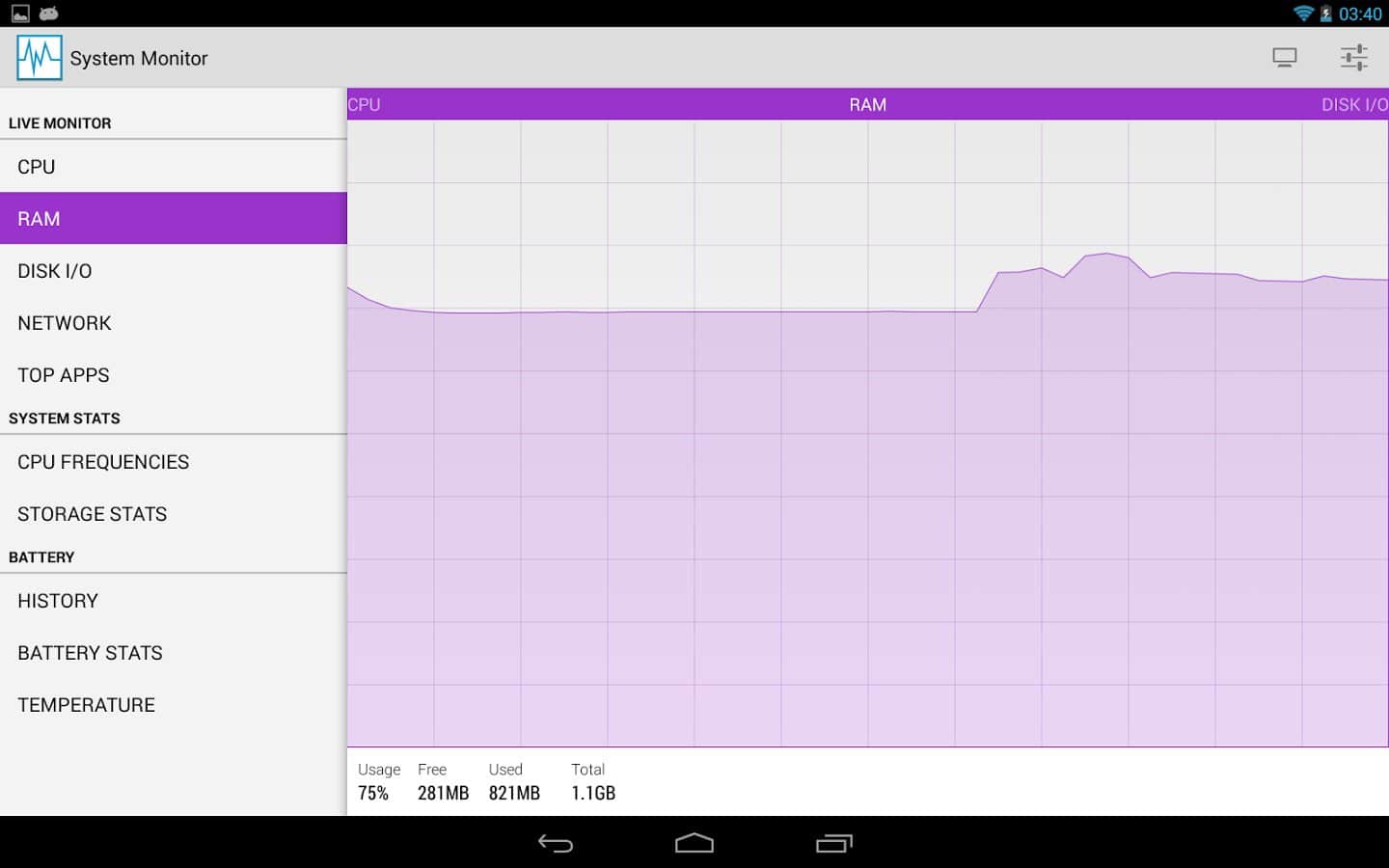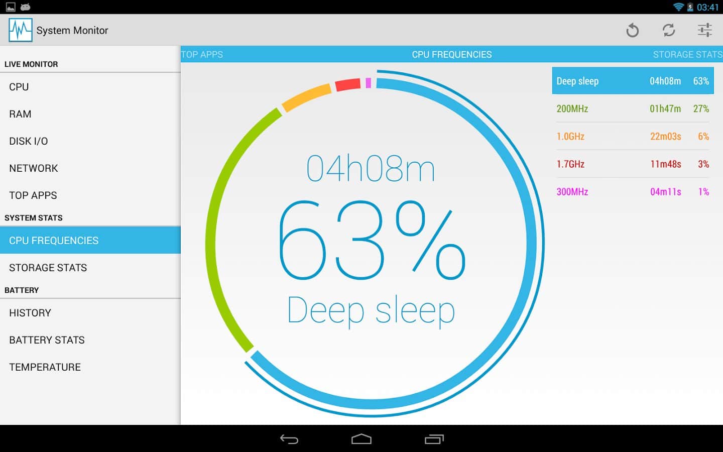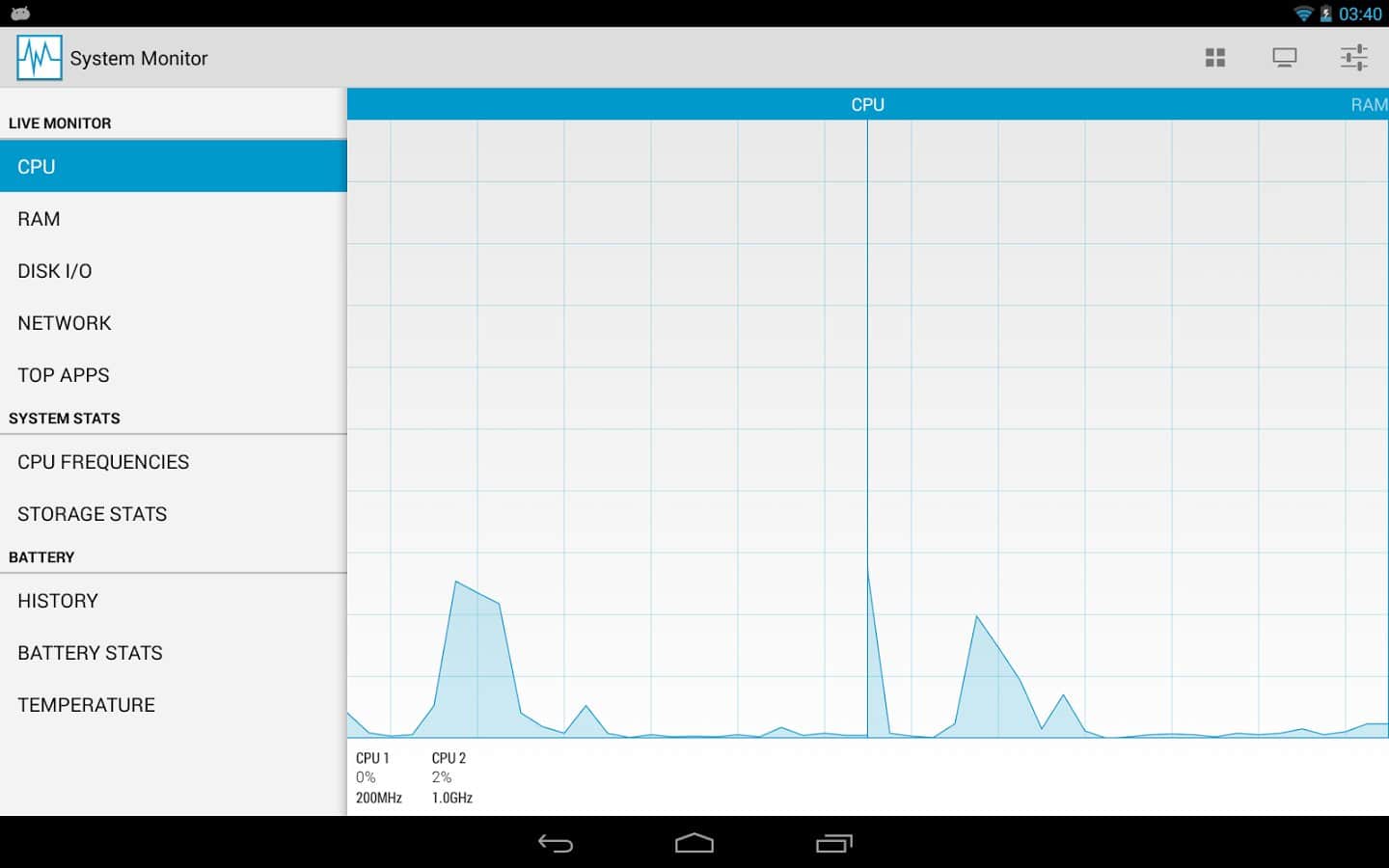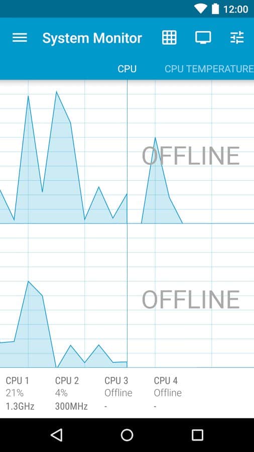System Monitor is a Unique application that helps you to monitor all of the phone. It will output you all the information on your device. Separately show the performance of each kernel. It will show what application you scores memory. And much more. Also, using it you can set up your phone, or need to clean the memory. So it not only monitors, but will replace many other apps.