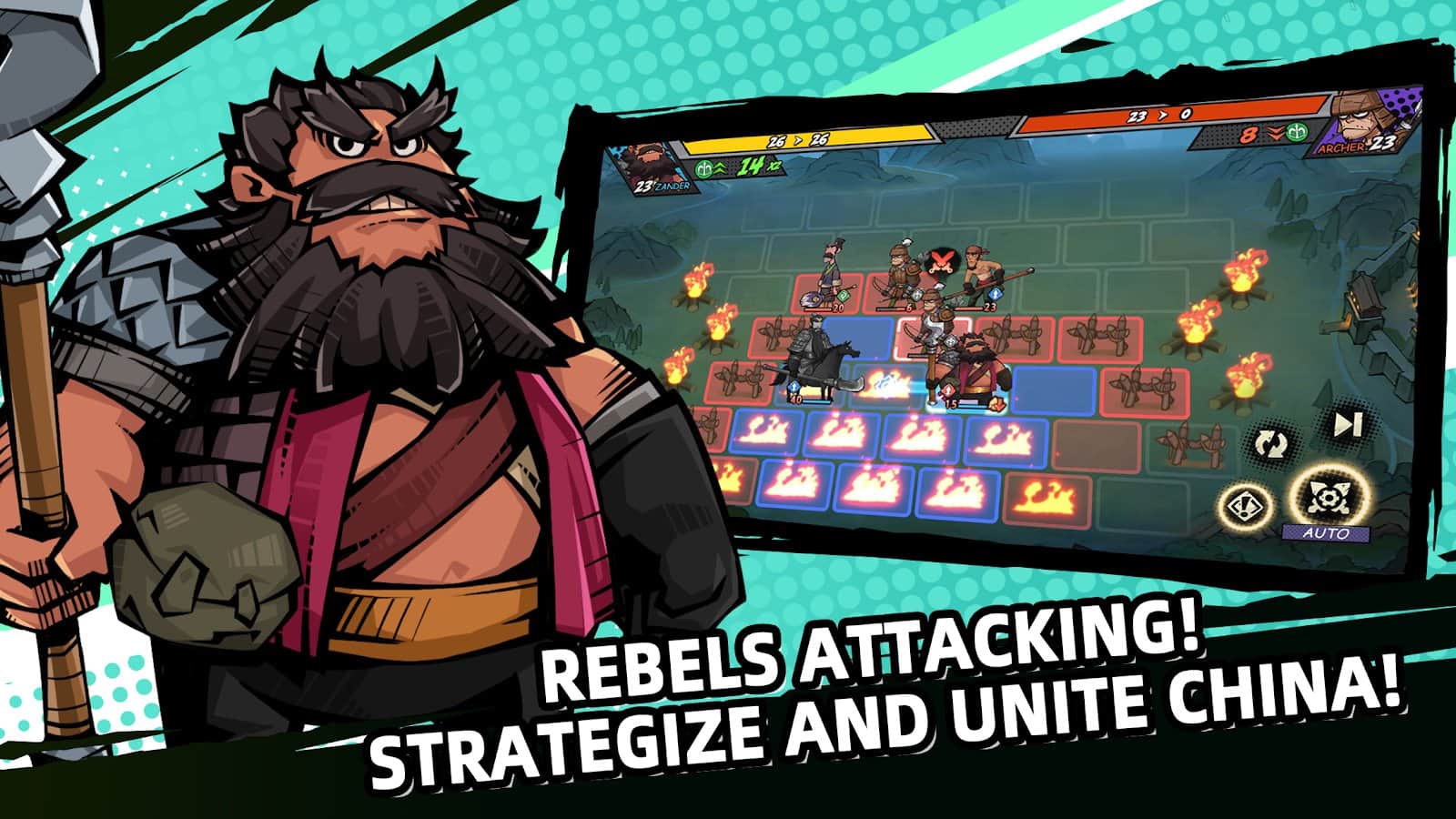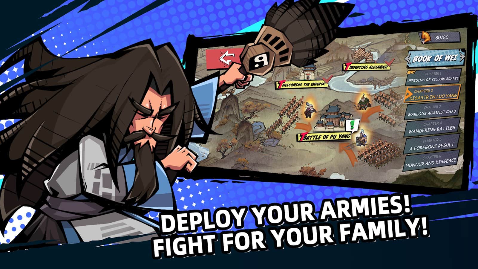 the Tactics of the three kingdoms – tactical chess game on Android, which will require logic and thinking. In this game you will make an unbeatable team and will challenge Yellow armbands, who are terrorizing the locals and destroying the city. Join the mighty heroes and famous commanders and immerse yourself in this turbulent century of chaos. Join in the famous battle of the three kingdoms and gather your invincible team. Develop your tactics of warfare while taking into account the strengths and weaknesses of your team members. Develop the skills of their fighters and achieve good results in this game.