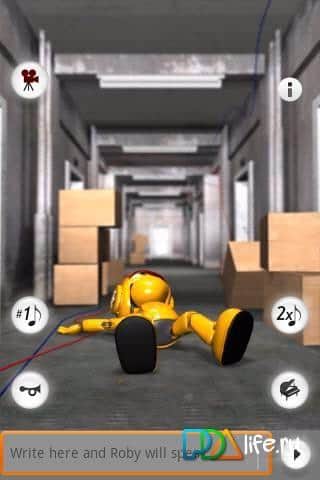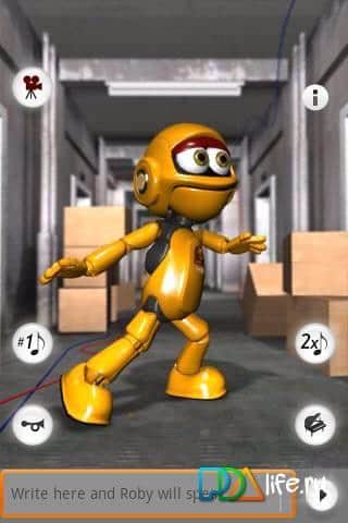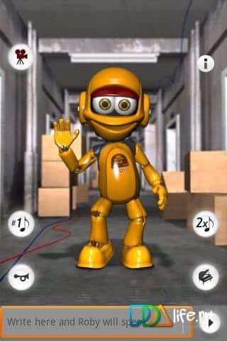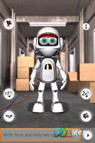 Talking Roby the Robot - a speaking robot for Android platform. He knows how to pronounce the words entered from the keyboard. He can speak and dance hip-hop. Repeats what You said in his mechanical voice.