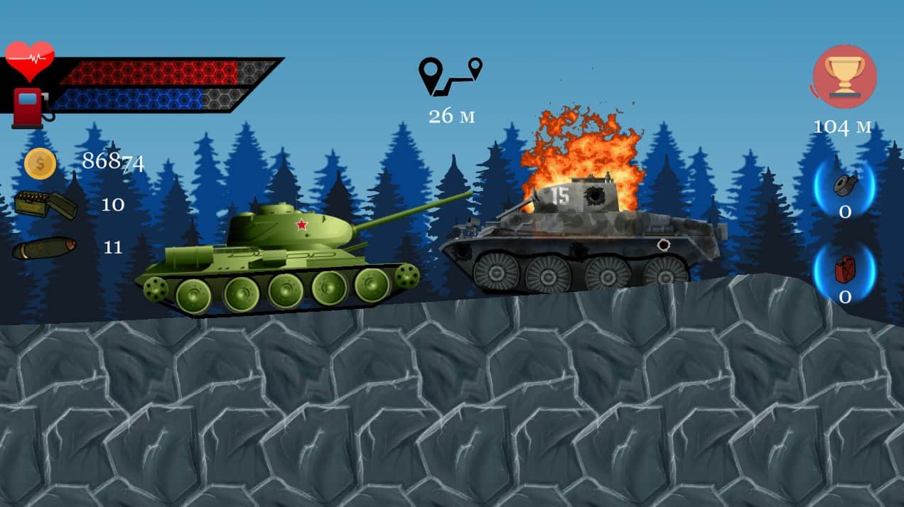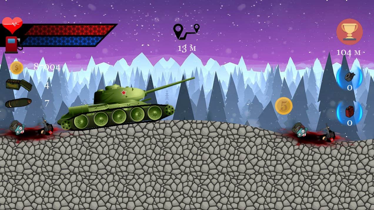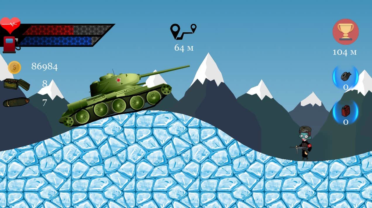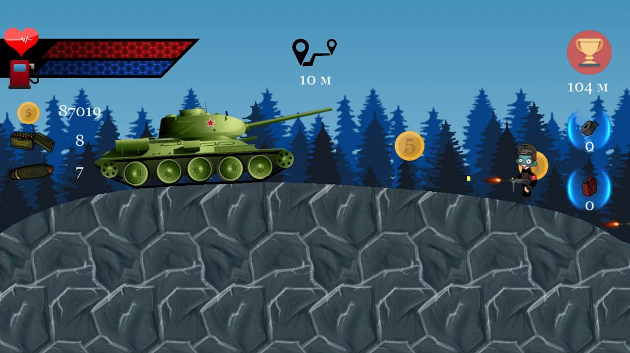 Tank of war - a game on Android in which you have to pass a dangerous mission. Quickly refuel with fuel and ammunition and fight for victory. From T-34 tanks you can fire at zombies from a cannon, push them, thereby longer to stick in the game. But be careful, because ammo and fuel are not eternal and can quickly end. In each task, try to collect as many coins as possible and prove to your friends that you're the best tanker and no wonder the commander chose you to fight in the battle with terrible enemies.