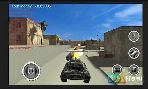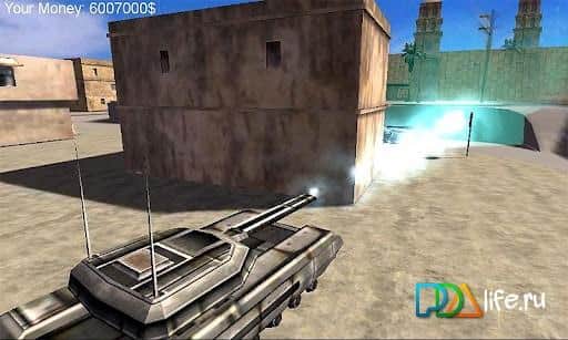 Tanks Online - so in front of you online game battle of tanks on Android. A great opportunity to feel like a tank! Battlefield - covered terrain resembling a training camp or part of the settlement. There are a lot of buildings, ramps, platforms and other landscape details. Your task is hiding, not to be defeated, to find the enemy and destroy. Something like Contre Strike or Unreal, true and easier on military equipment! Control of the game is simple-the gas and brake pedals, and turns right and left, fire and restart! Despite its simplicity, the game draws, the more that you play with real opponents and not the computer. And it is always interesting!