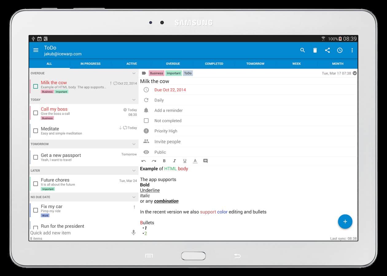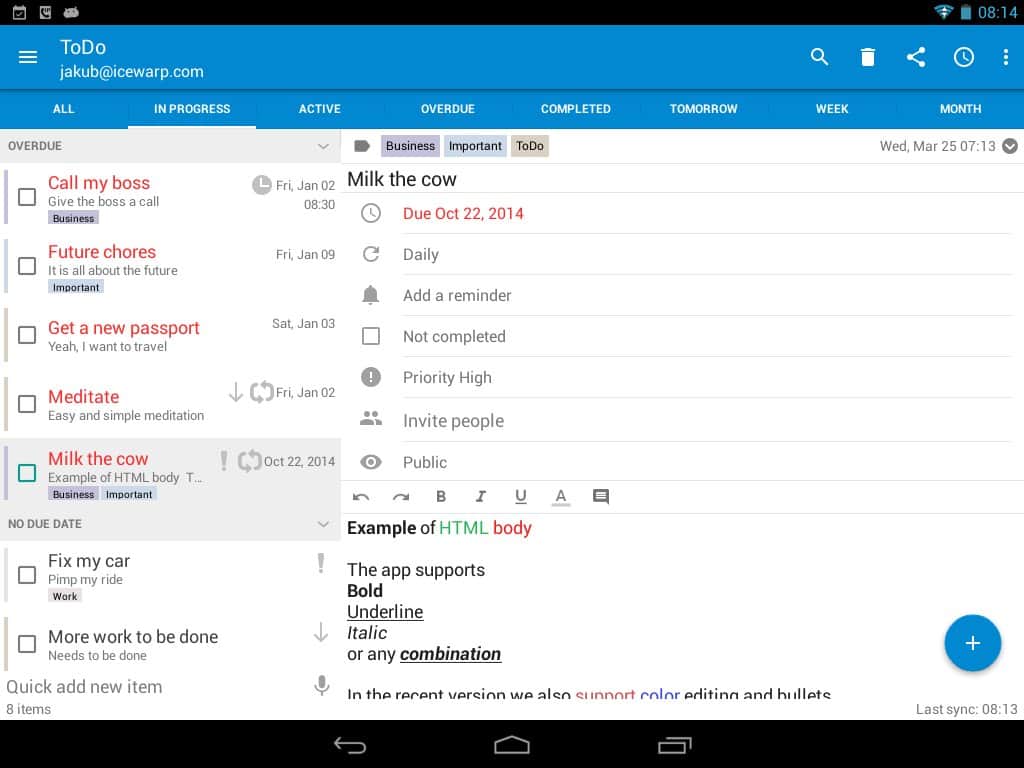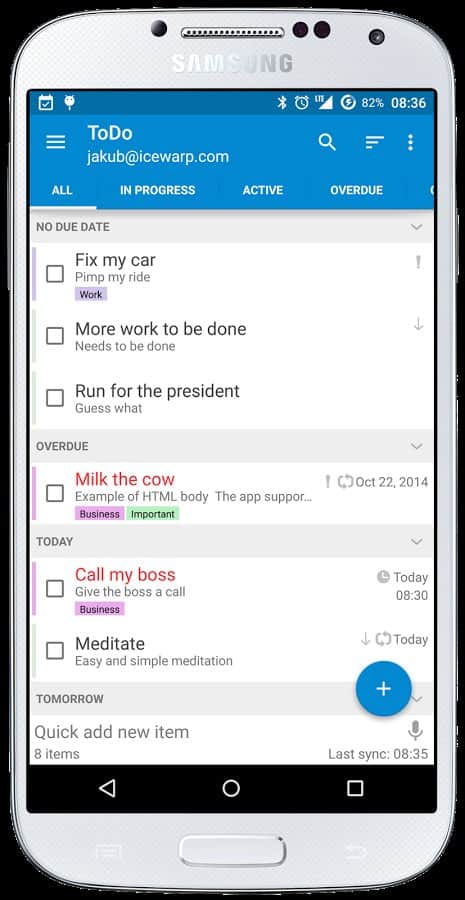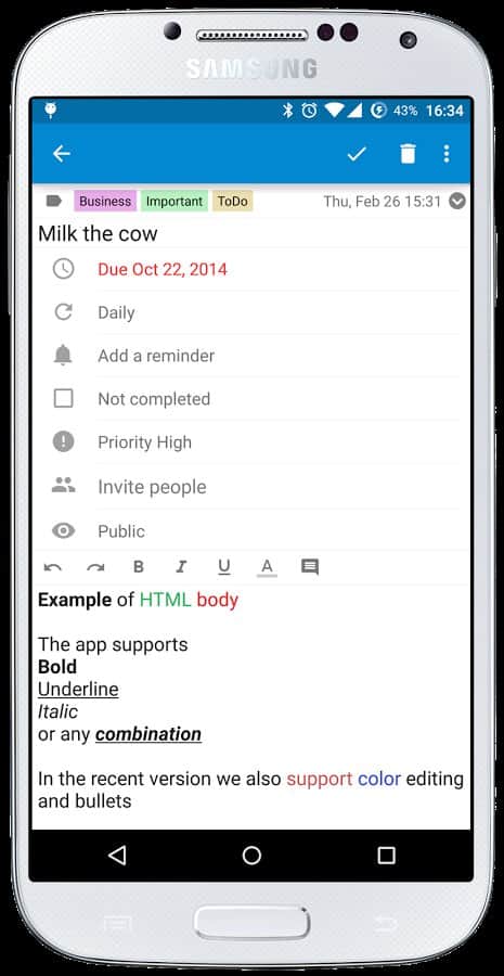 Tasks & Notes for MS Exchange – a great free program for Android smartphone/tablet from developer Jakub Klos, which successfully complement the standard calendar, tasks and notes. Supports synchronization with MS Exchange, including accounts on Hotmail/Outlook.com (and desktop Outlook 2013, respectively).