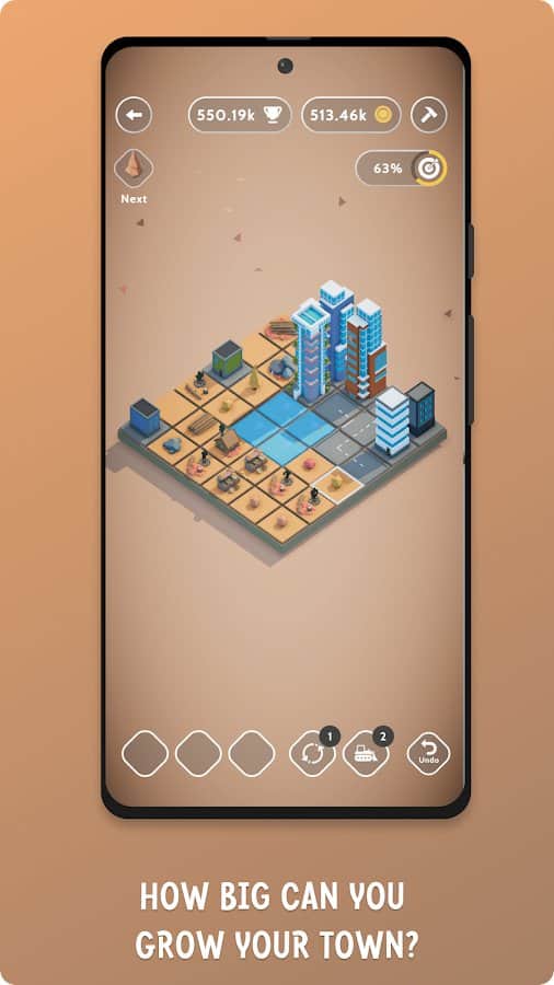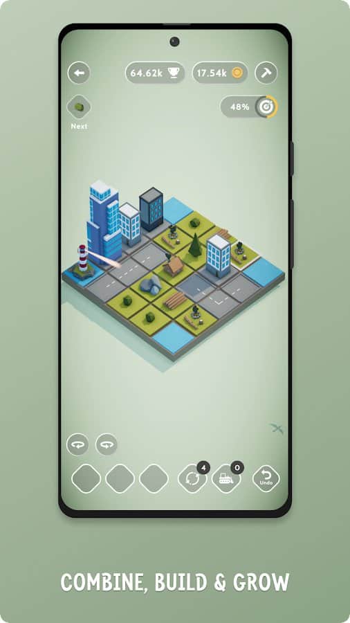 Discover the exciting world of TEENY TINY TOWN, where your inner architect can find its expression and create a magnificent, vibrant city. Here you can combine, build, and watch as your city transforms right before your eyes. In this captivating puzzle, your task is to connect three or more objects on the game board to create new structures. Let simple trees turn into magnificent houses, and then put these houses together to create monumental castles. And as your city begins to thrive, don't forget to collect gold from the houses to unlock new items and expand your development possibilities.