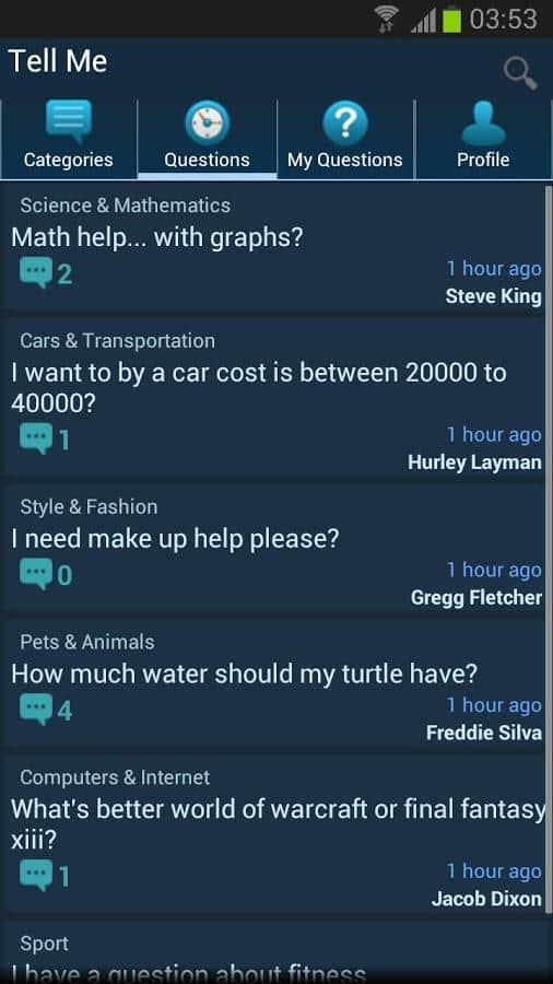 Tell Me the Answers – this is a great opportunity to get the answer to your question from any field of activity. The resulting knowledge can be both encyclopedic (theoretical) and practical, which provide real people. Tell Me the app designed specifically for Android OS. This is an excellent example of how the Internet helps people to solve various problems. The application allows everyone to view the interesting questions of various categories which have been left by people from different parts of the world. It is not only useful but also interesting.