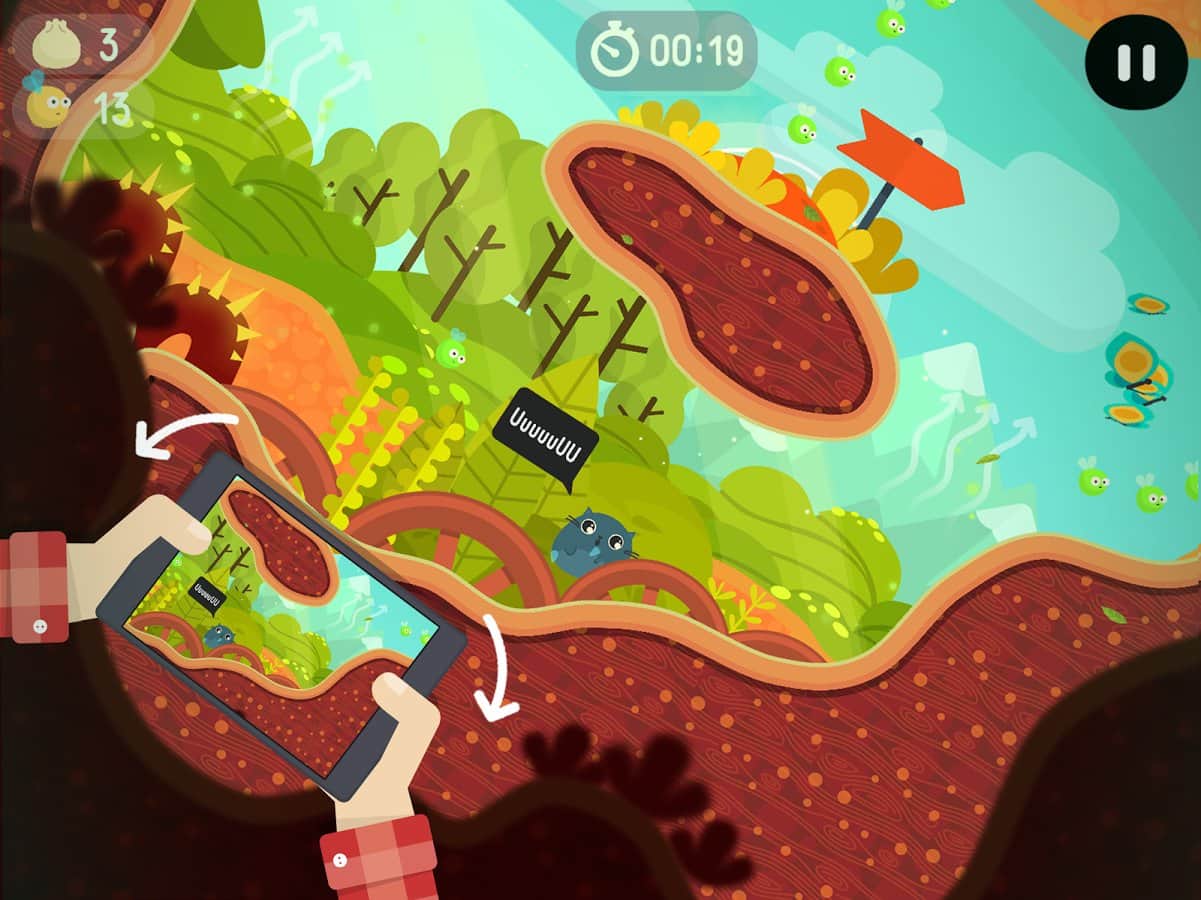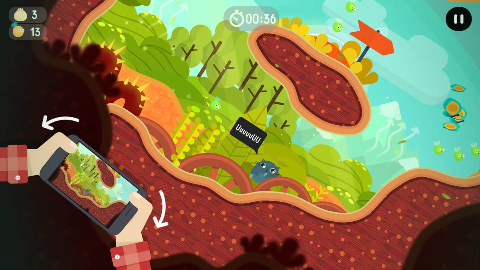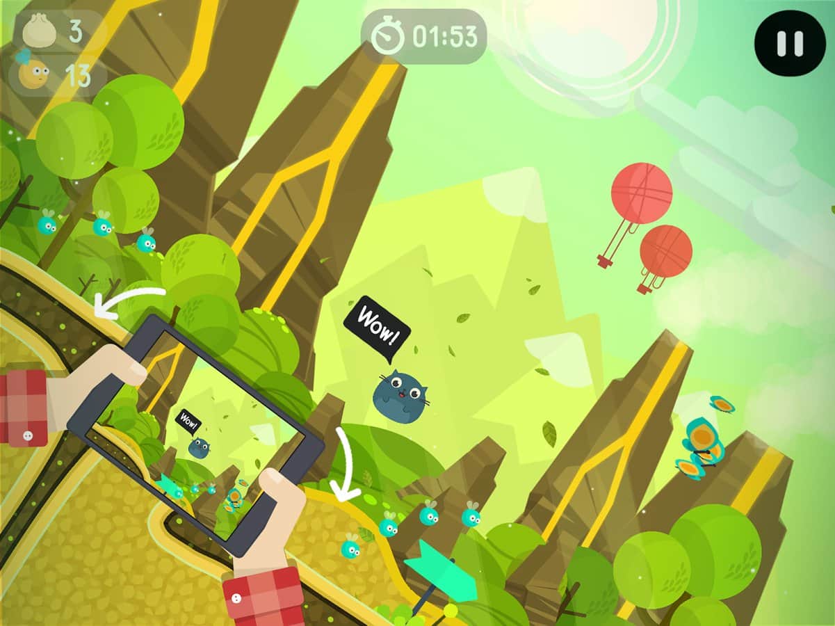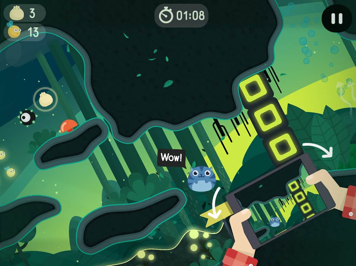 The Big Journey – a fun platformer for Android where you will help the cat Mustache to save his friend cat Cho. In this game your task will be using the accelerometer to control the movements of a cat who goes down the narrow labyrinths and caves. Go through many obstacles and barriers and do little jumps. Play this game and enjoy the cheerful soundtrack and an excellent colorful graphics. On its way, don't forget to collect numerous bonuses, as well as food for the cat. Travel through a dangerous world and unlock new levels of the game. To control, use tilt the phone or special button on the screen.