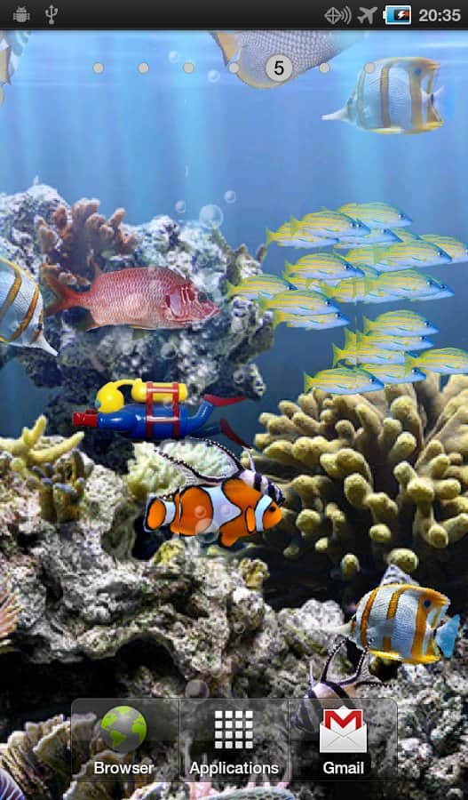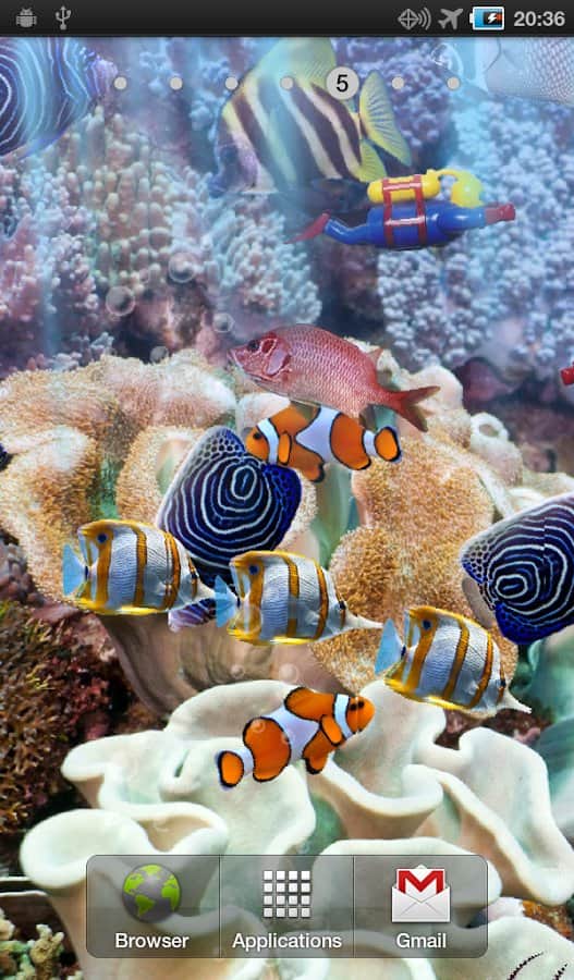 The real aquarium LWP is a realistic live Wallpaper for Android with beautiful tropical fish. You can add fish, and have such a celebrity like fish clown from the movie "finding Nemo") Different backgrounds coral, light effects, bubbles, will make your smartphone more alive.