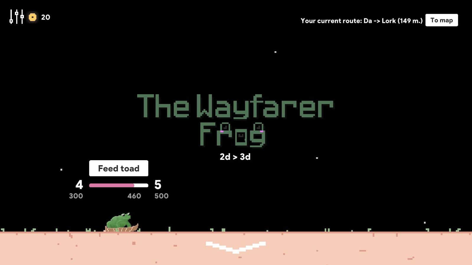 & lt;p & gt; The Wayfarer frog-the adventures of the toad are gaining considerable speed! Get into a special boat and move on the sand, doing unusual tricks in the air after passing the steep peaks. Different biomes will diversify the whole process and make it even more fun! Complete exciting challenges on the map, flying through obstacles in the form of traps, passageways, lakes and other things. You will also have the opportunity to meet a hologram of a cat and a robot to communicate with them and understand the main essence of the tasks. Don't forget to collect the appearance of frogs!