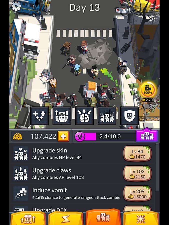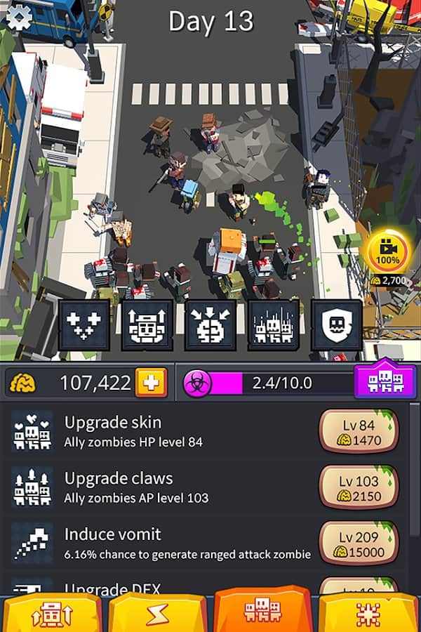The Zombinizer – a fascinating shooter for Android where you control a zombie. In this game you will navigate through the streets and turn people into zombies and creating his invincible army. The main character of this game is the first zombie in the world, experimented in a secret laboratory, but once the virus broke out and disaster struck. Our hero escaped from the lab and now moves around the city and devours people. Do everything you can to destroy all of humanity and strengthen their zombies. Explore all the levels of the game and use in battle numerous enemies.