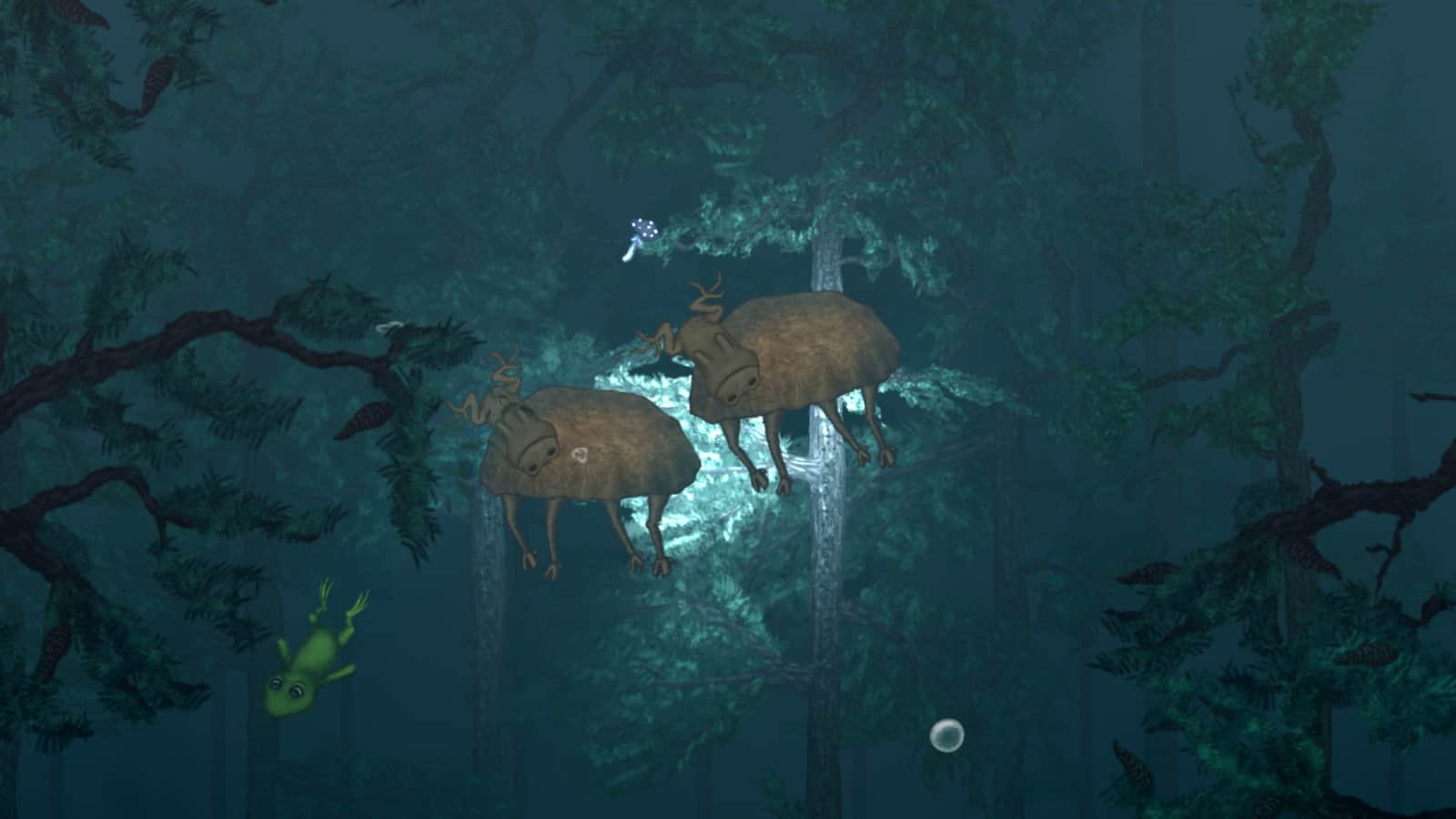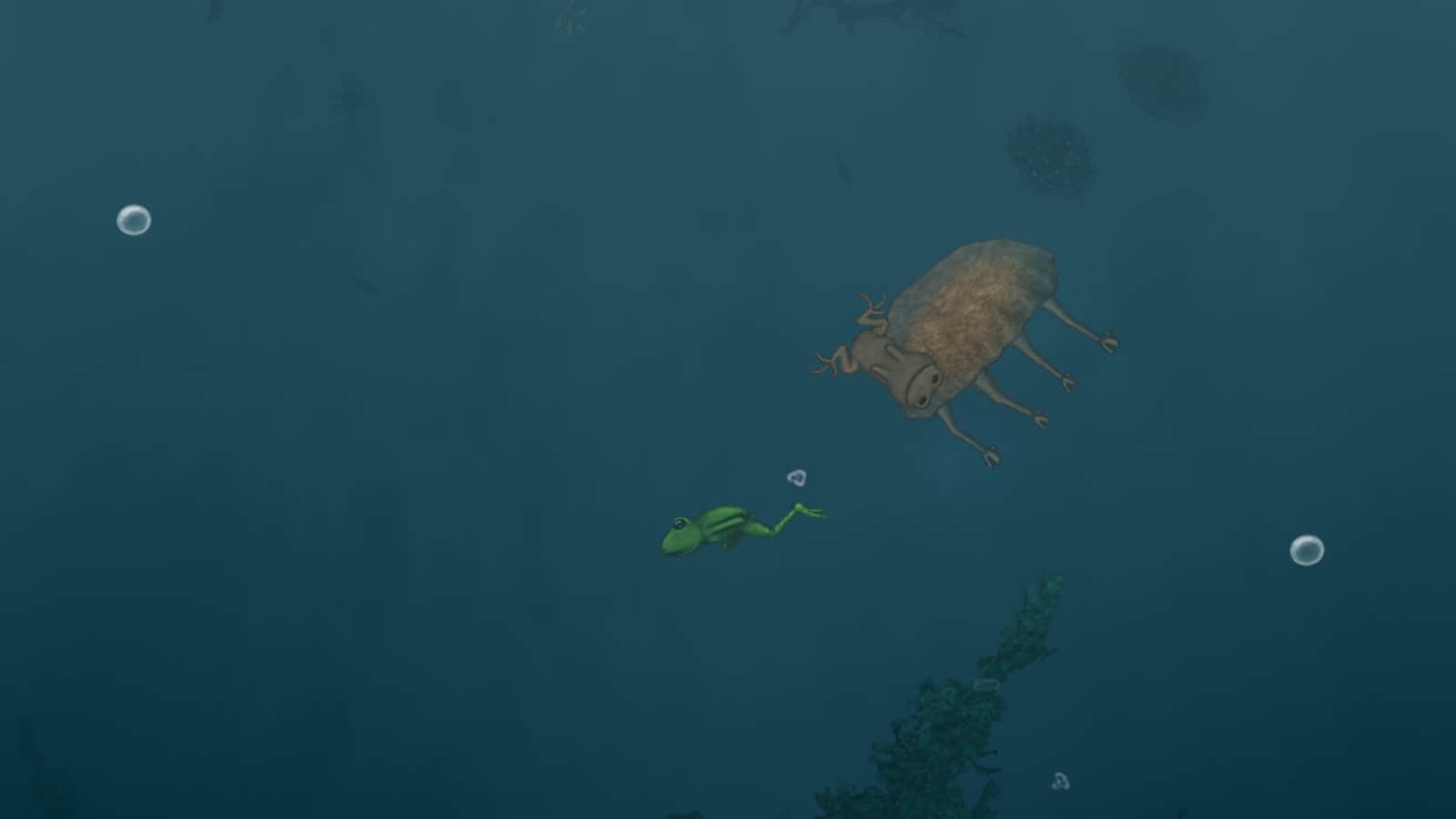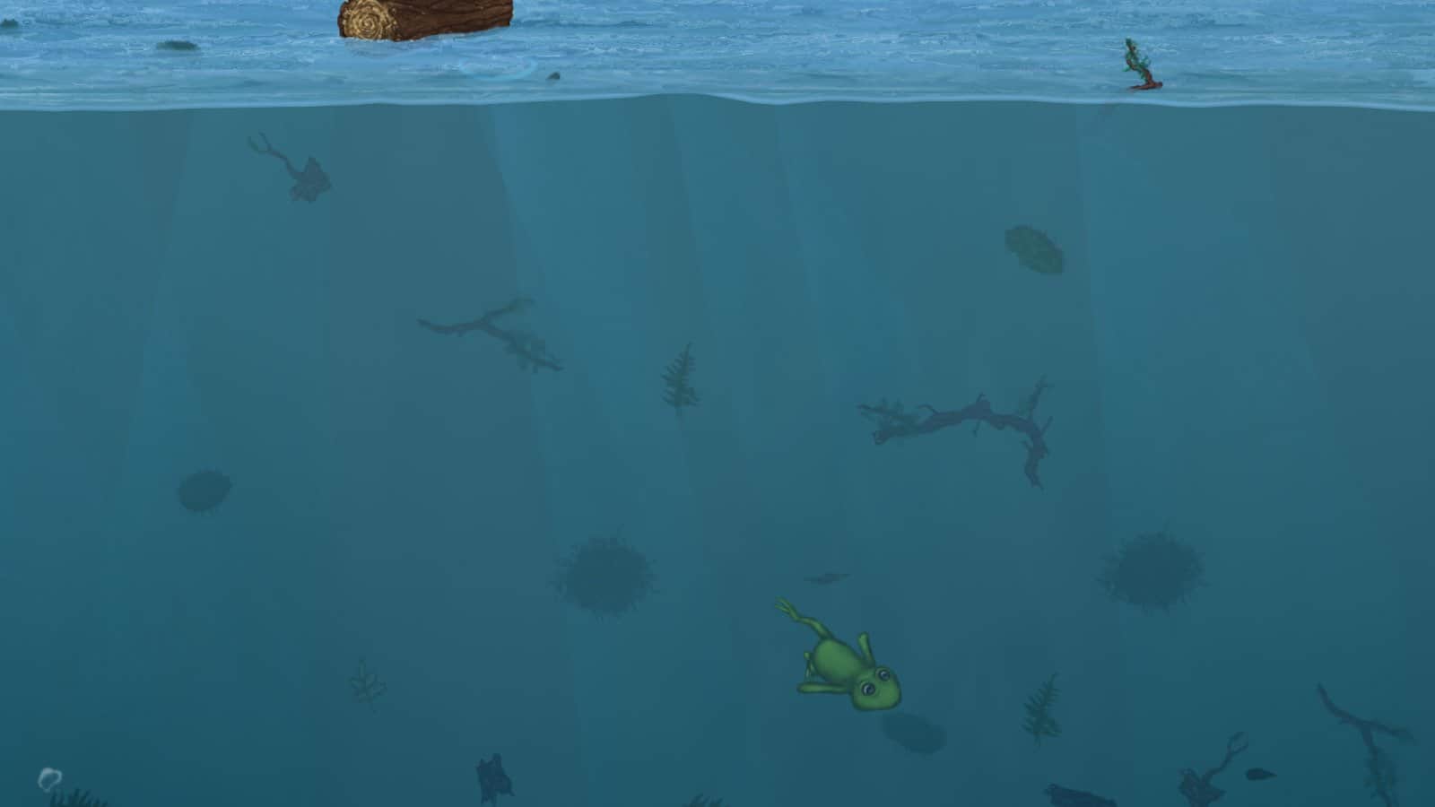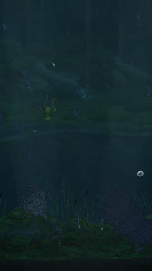 They Breathe – addictive game for Android where you control a frog that must explore the flooded forest. In this game you will help the frog descend into the depths of a forest filled with water and uncover all its secrets. In order to survive in this horrible and dangerous world your task is to collect bubbles of oxygen and to descend to the bottom and exploring the local unfriendly inhabitants. Try running away from enemies chasing you and collect sufficient oxygen for the further descent.