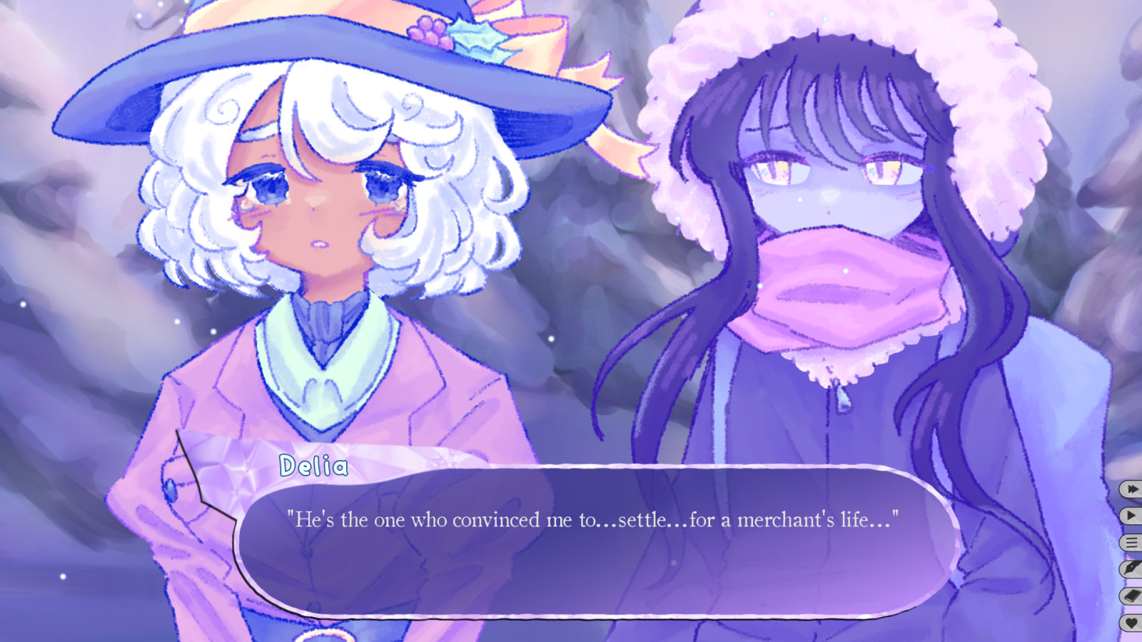 This Winter of Ours - When the world is drowning in snow and hope fades away, an unexpected encounter can change everything. Delia—a merchant's apprentice with an unfulfilled dream of magic—gets lost in an icy forest and accepts her fate… only to awaken next to a mysterious girl. Lux—a silent survivor hiding more than she reveals. Their path to salvation becomes a journey to themselves. A touching visual novel about loneliness, trust, and the quiet strength of connection that can warm even in the midst of eternal winter.